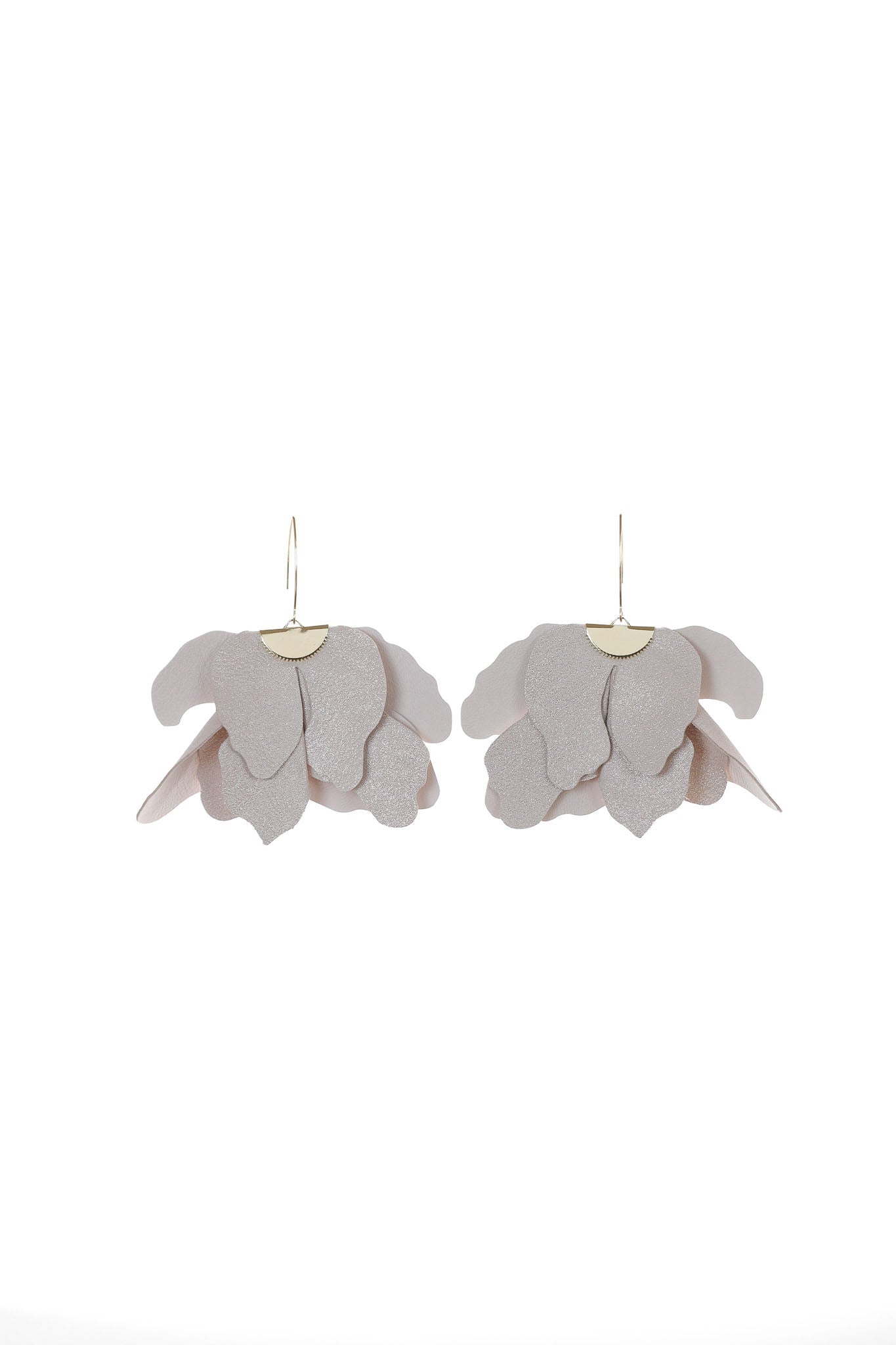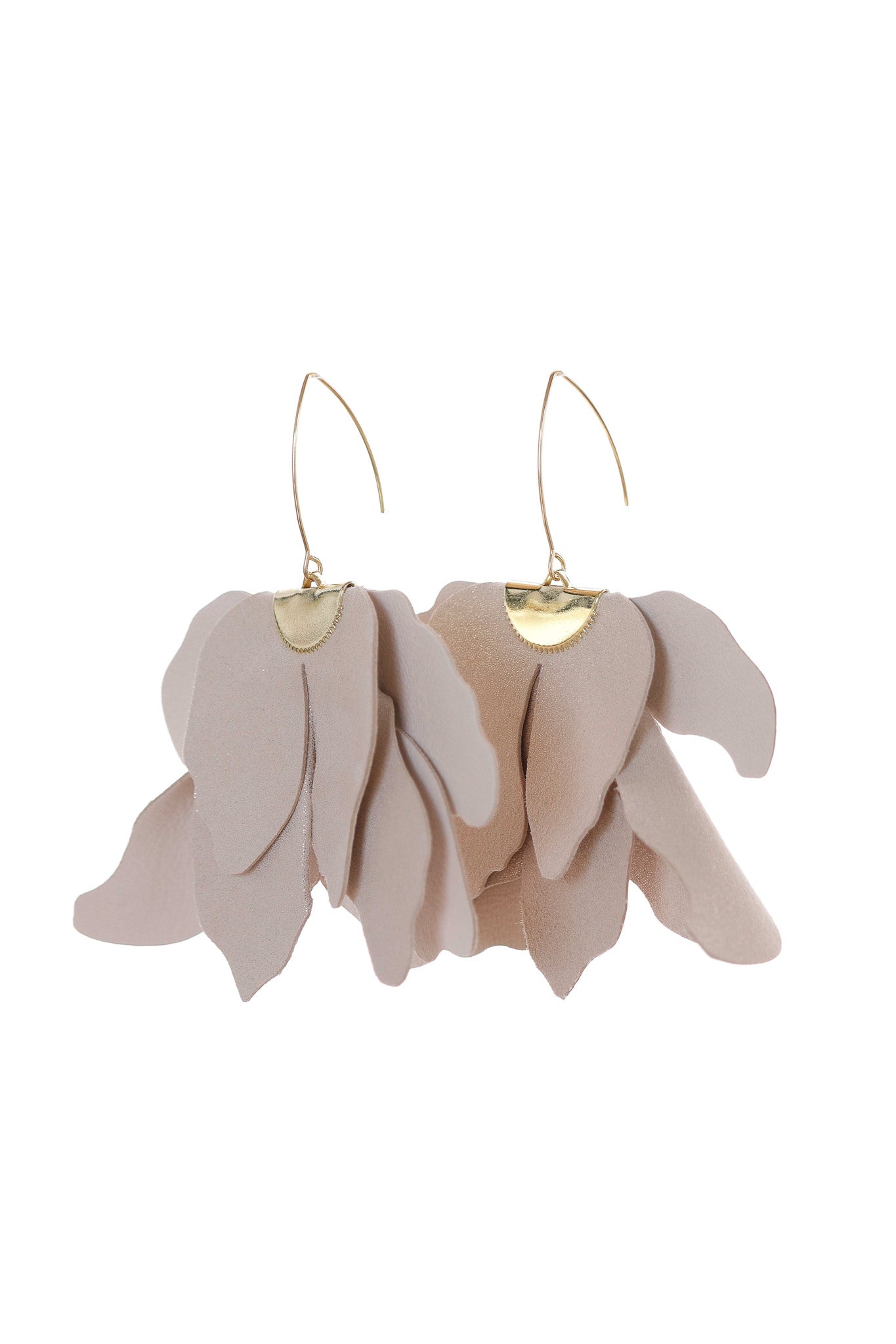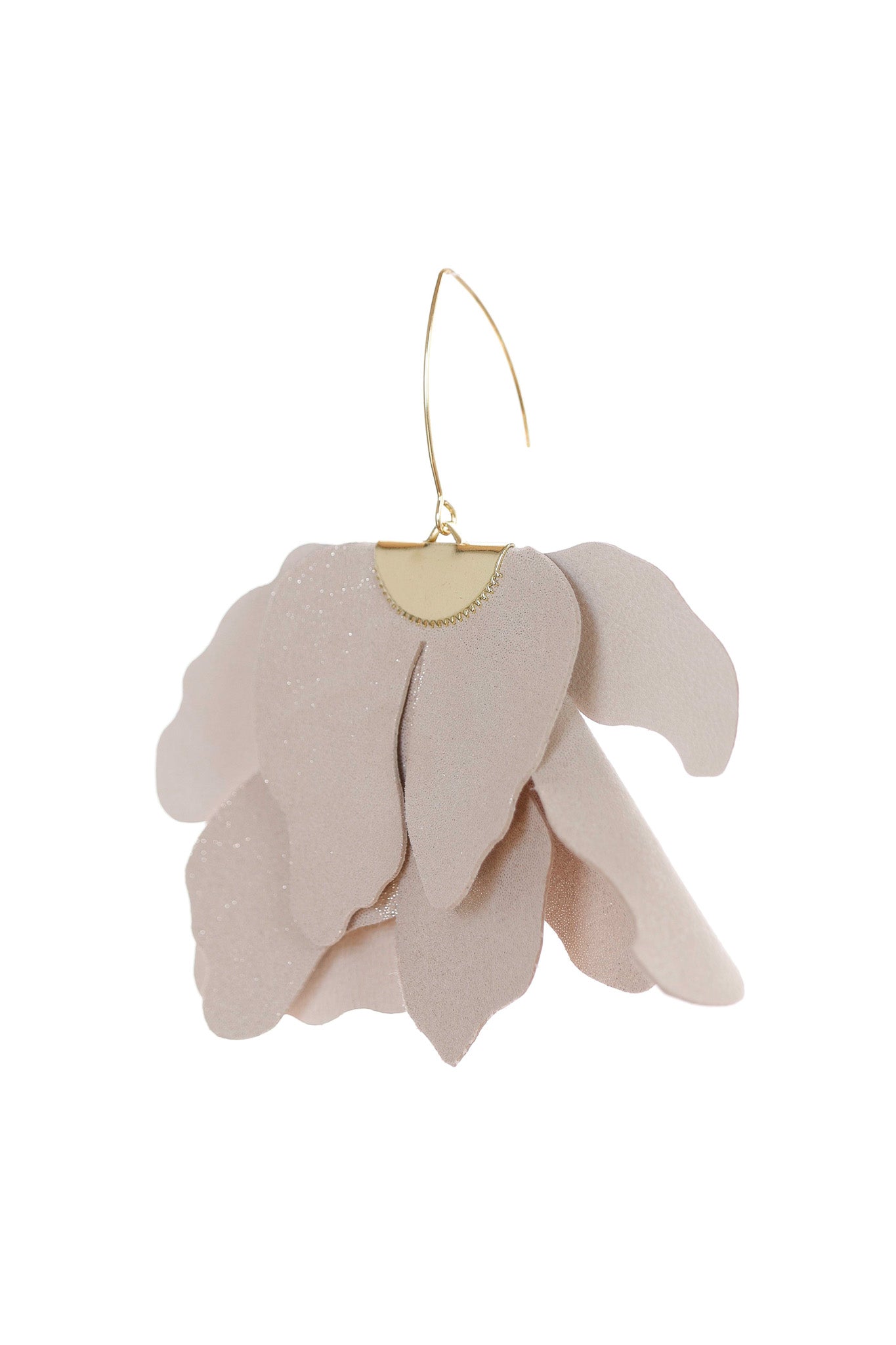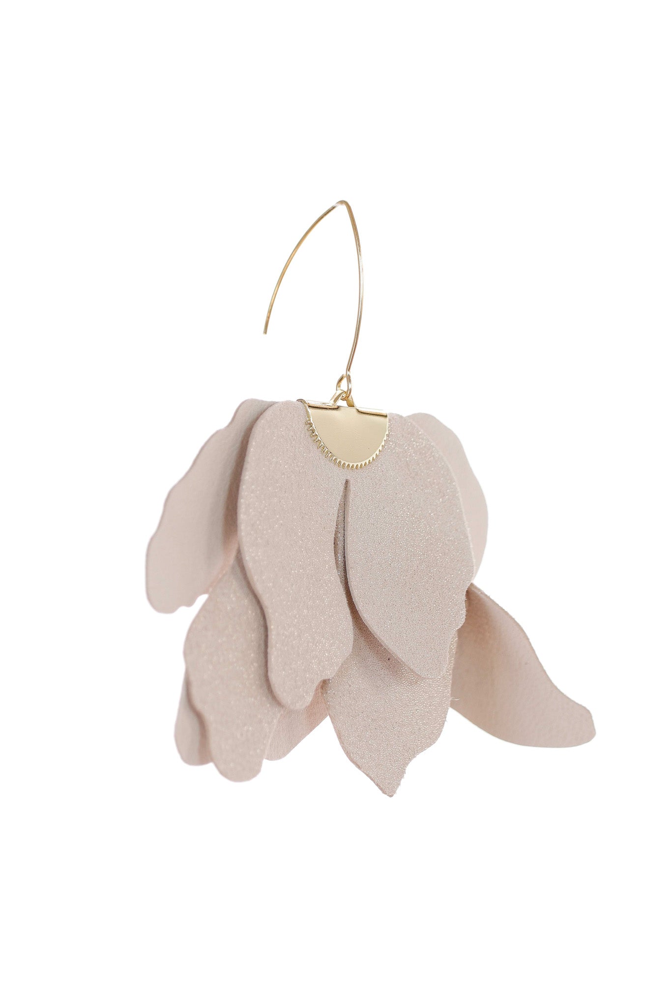Cu o formă inspirată de natura delicată, acești cercei sunt o piesă de artă în miniatură. Fiecare petală din piele naturală este atent modelată și suprapusă, creând un volum impresionant și o textură sofisticată. Nuanța de bej se îmbină armonios cu strălucirea fină a sclipiciului, oferind un look prețios, dar discret. Detaliile metalice aurii de la baza cerceilor adaugă un finisaj elegant și modern. Sunt perfecți pentru a-ți evidenția stilul feminin și pentru a adăuga o notă de rafinament, fiind ideali atât pentru o ținută de zi, cât și pentru un eveniment special de toamnă.
