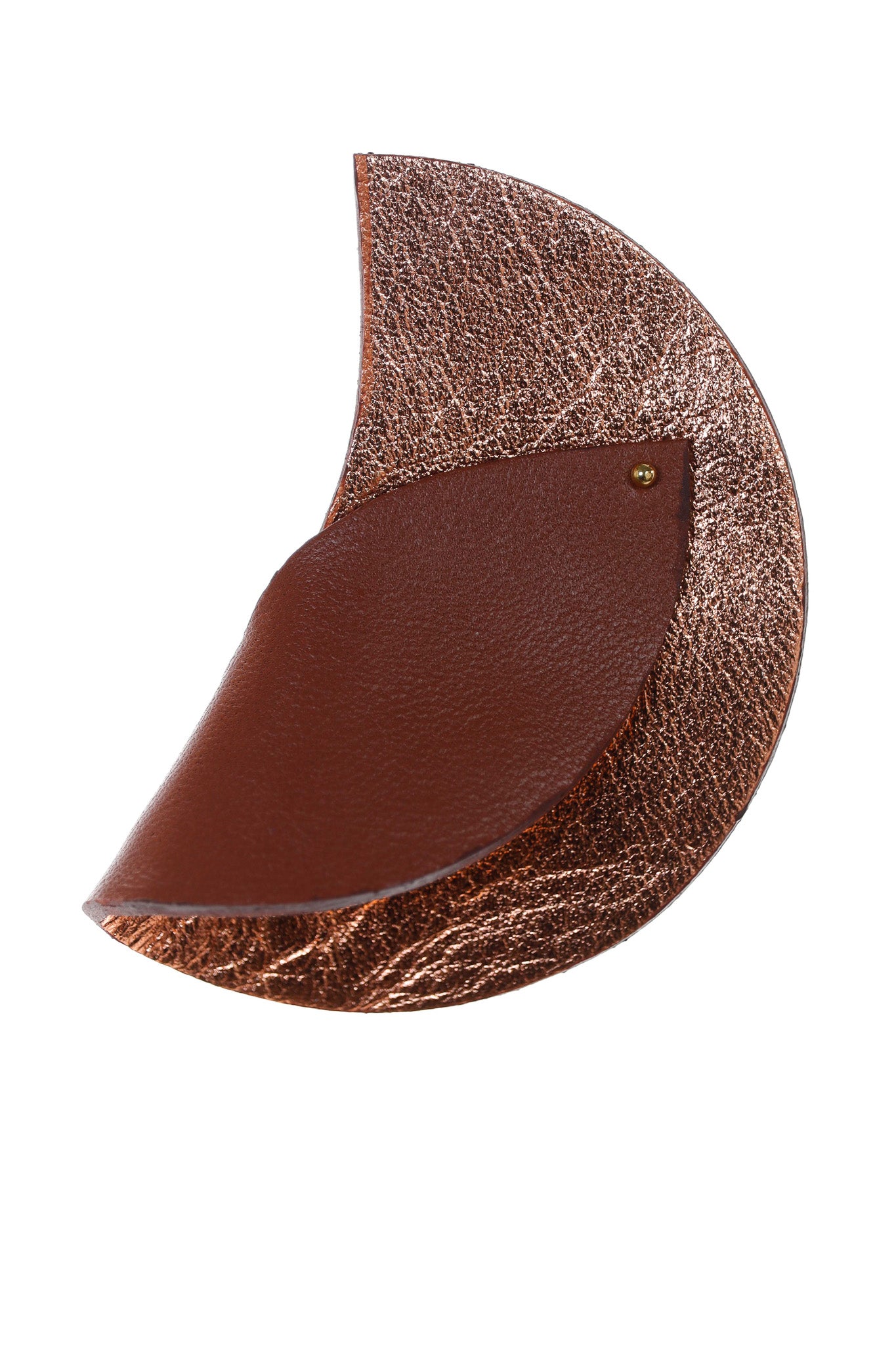 Acești cercei sunt the best of both worlds – metalic și mat! Lungimea de 7 cm și lățimea de 5 cm îi fac statement, dar forma de semilună și finisajul din piele naturală îi fac extrem de ușori.