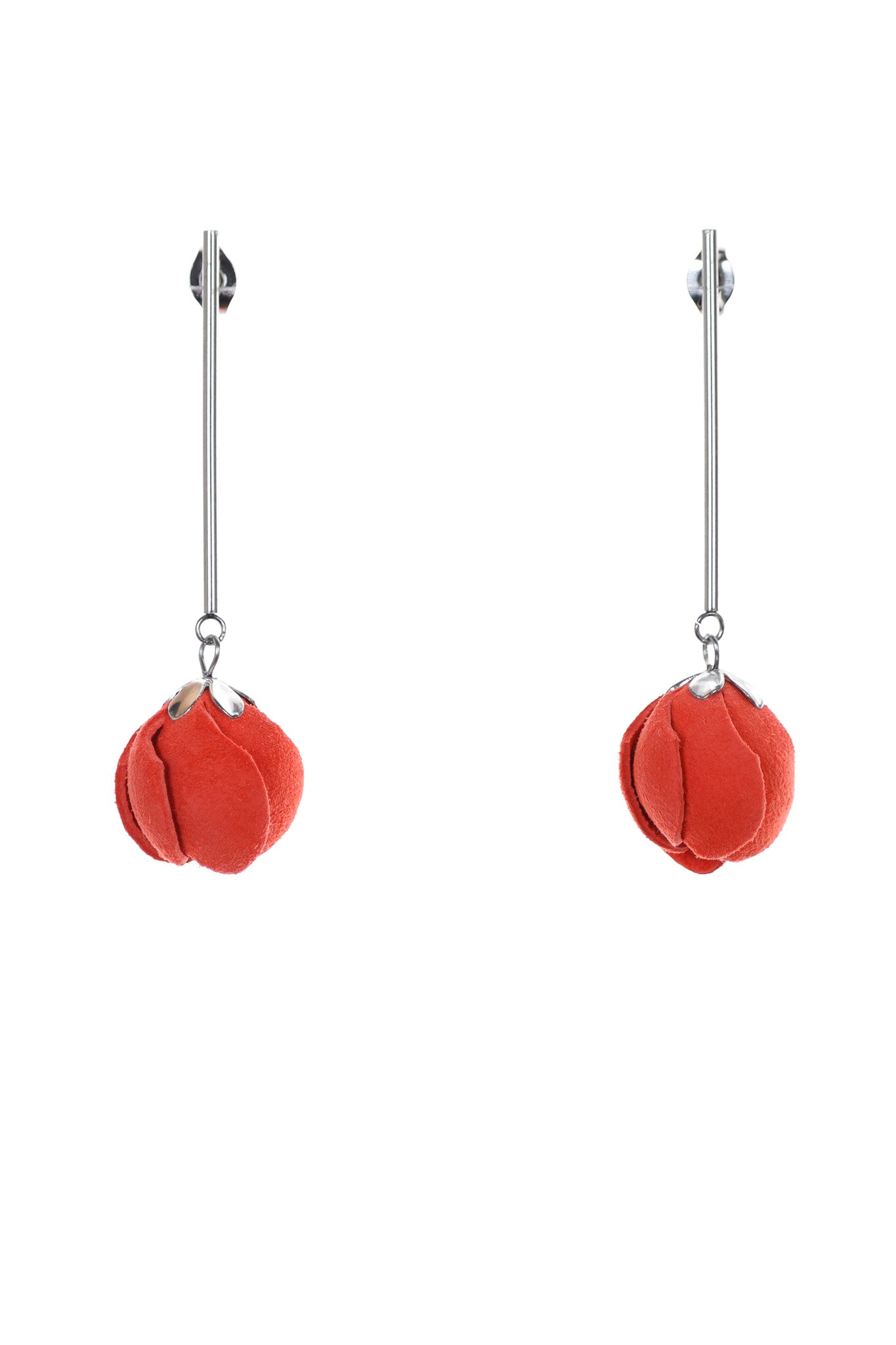 Acești cercei sunt statement datorită lungimii lor de 8 cm, dar sunt foarte clean și moderni. Bara metalică argintie subțire le dă un aer modern și contrastant, iar floarea din piele naturală adaugă acel touch special.