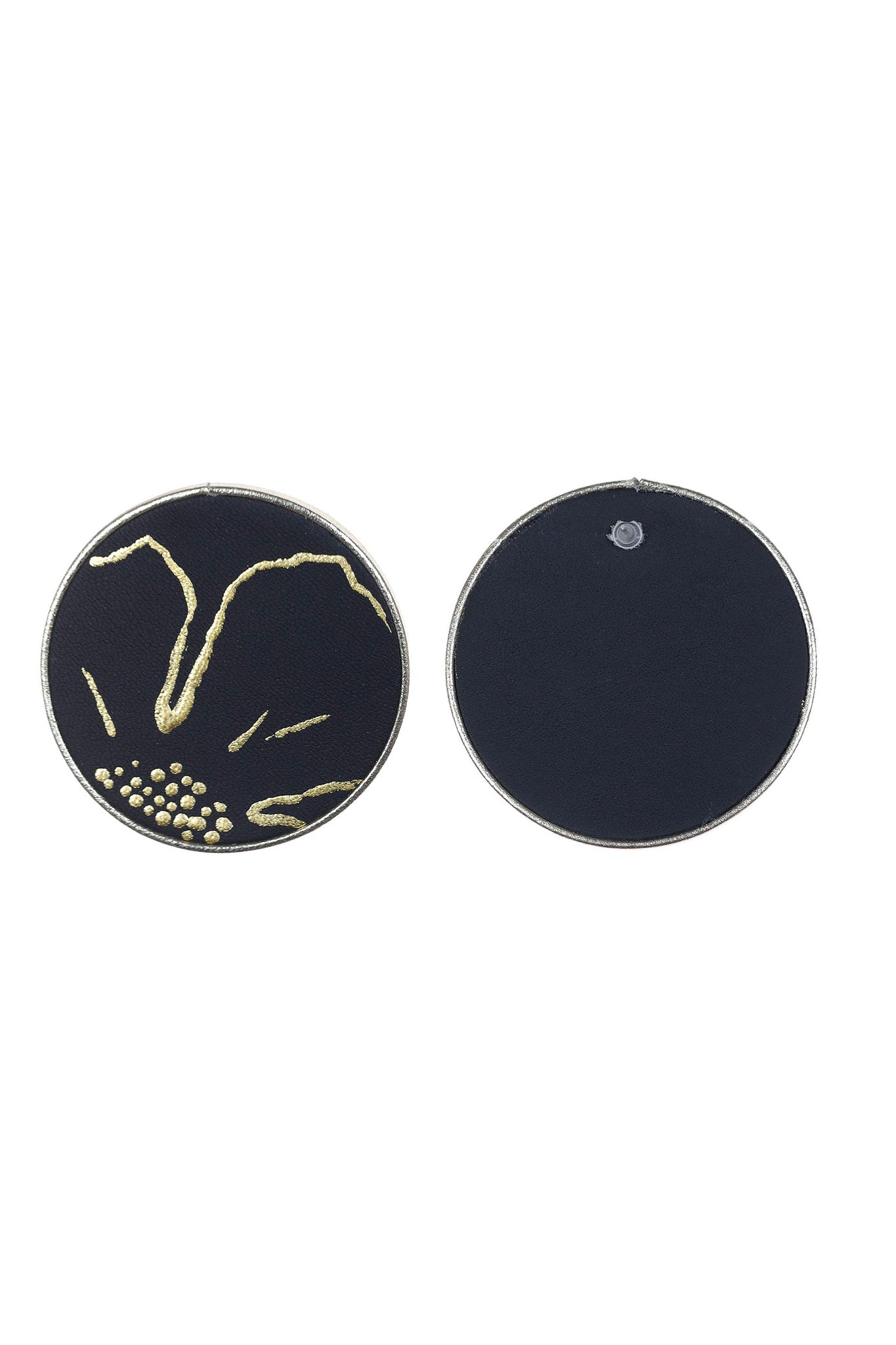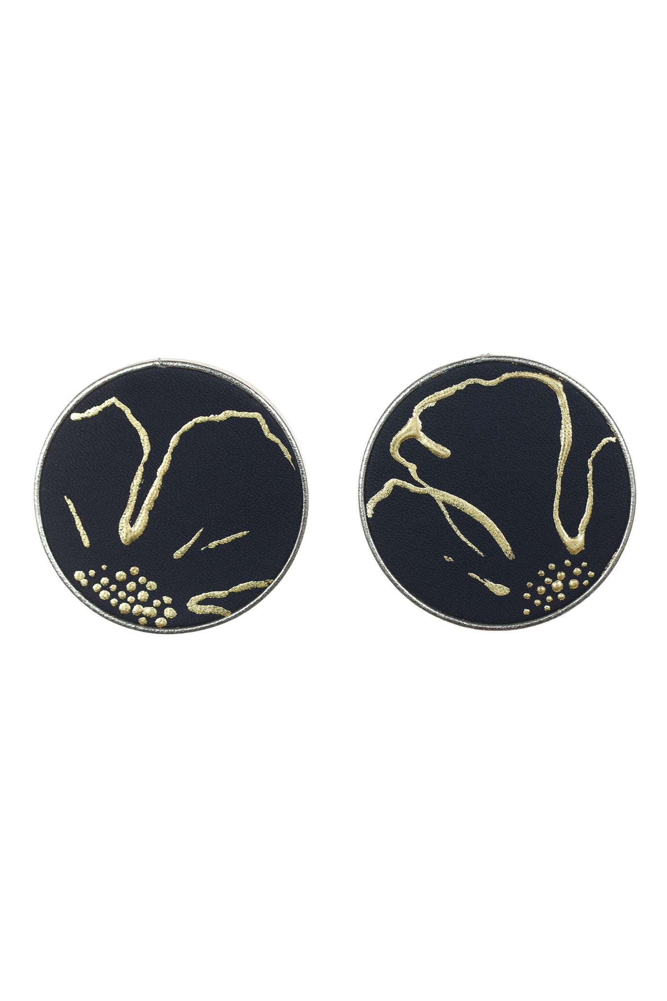 Acești cercei geometrici sunt adevărate miniaturi artistice, lucrate manual pentru a surprinde echilibrul dintre contrast și strălucire. Utilizarea foiței de aur pe baza de piele neagră creează un efect vizual spectaculos, amintind de picturile abstracte. Unicitatea acestui model constă în versatilitatea sa: poți alege să porți partea cu foiță de aur pentru un look de seară sau evenimente speciale, ori partea neagră mată pentru o zi la birou sau o ținută minimalistă.