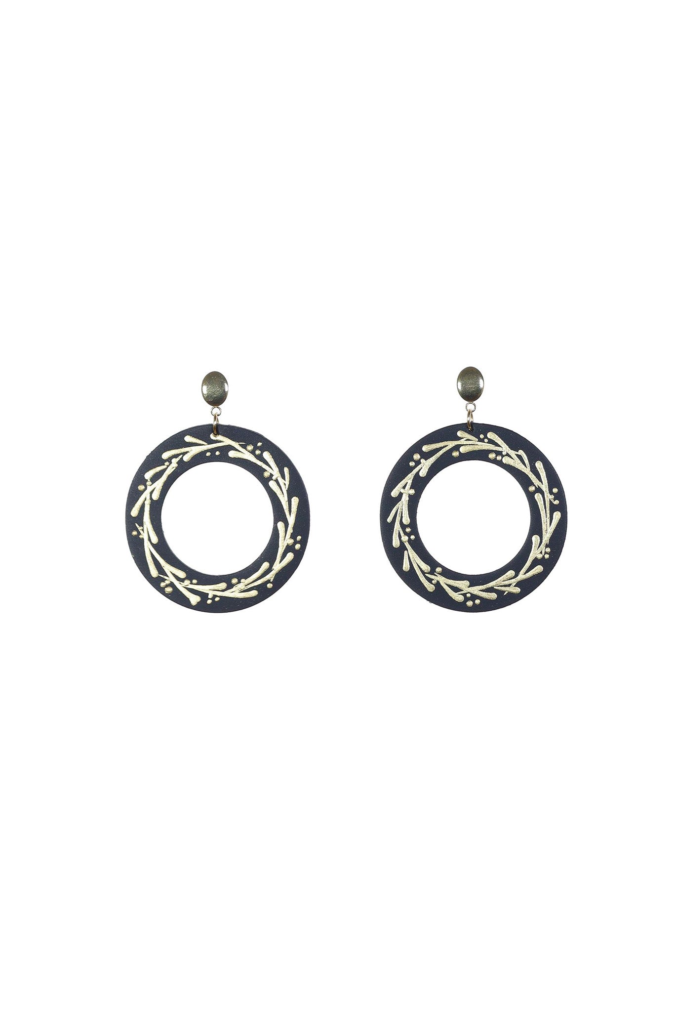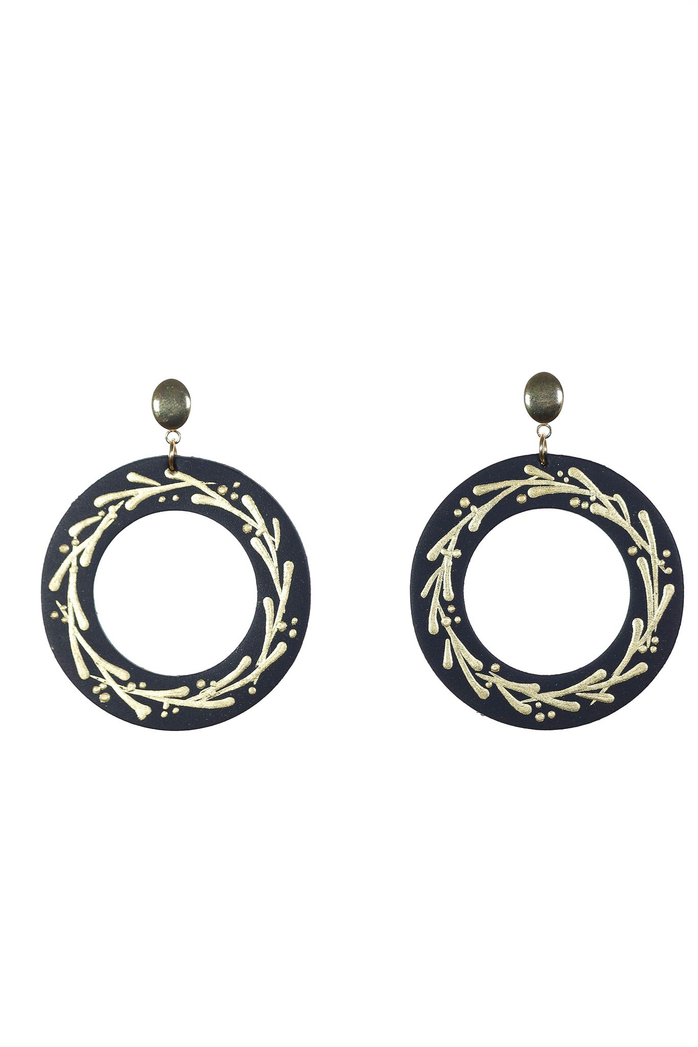 Cerceii Hoop Gold sunt o celebrare a rafinamentului artizanal. Realizați manual din piele naturală, aceștia impresionează prin aplicarea foiței de aur care desenează o coroniță delicată pe baza neagră, amintind de eleganța accesoriilor clasice, dar într-o interpretare modernă. Decupajul interior de 3 cm oferă piesei o transparență aparte, făcându-i surprinzător de ușor de purtat în ciuda diametrului generos de 5 cm.
