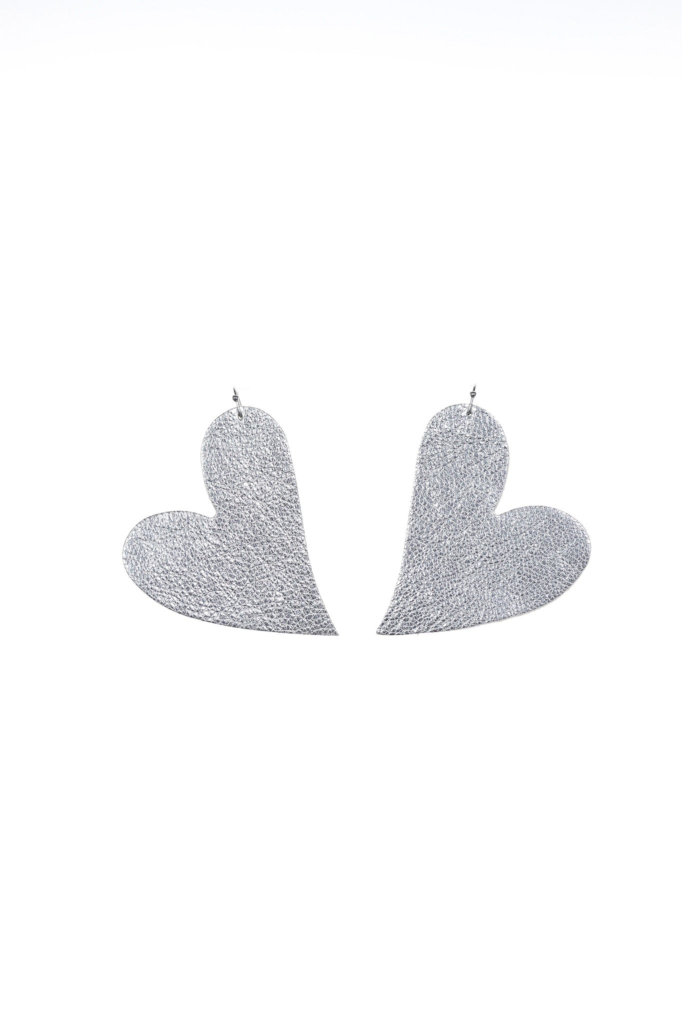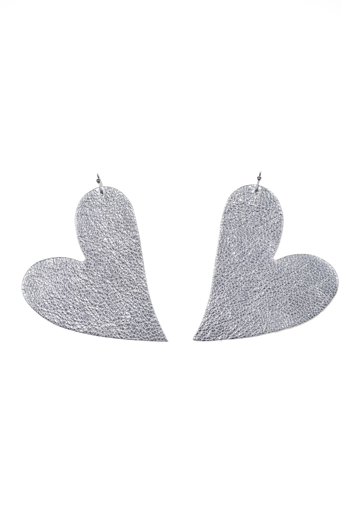 Acești cercei statement în formă de inimă sunt definiția eleganței moderne cu un strop de strălucire festivă. Realizați din piele naturală argintie cu o textură deosebită, ei aduc acea stare de luminozitate și încredere necesară pentru a ieși în evidență într-un mod rafinat. Te fac să te simți radiantă și sofisticată, oferindu-ți acea bucurie aparte pe care o ai atunci când porți un accesoriu creat manual care captează lumina la fiecare mișcare.