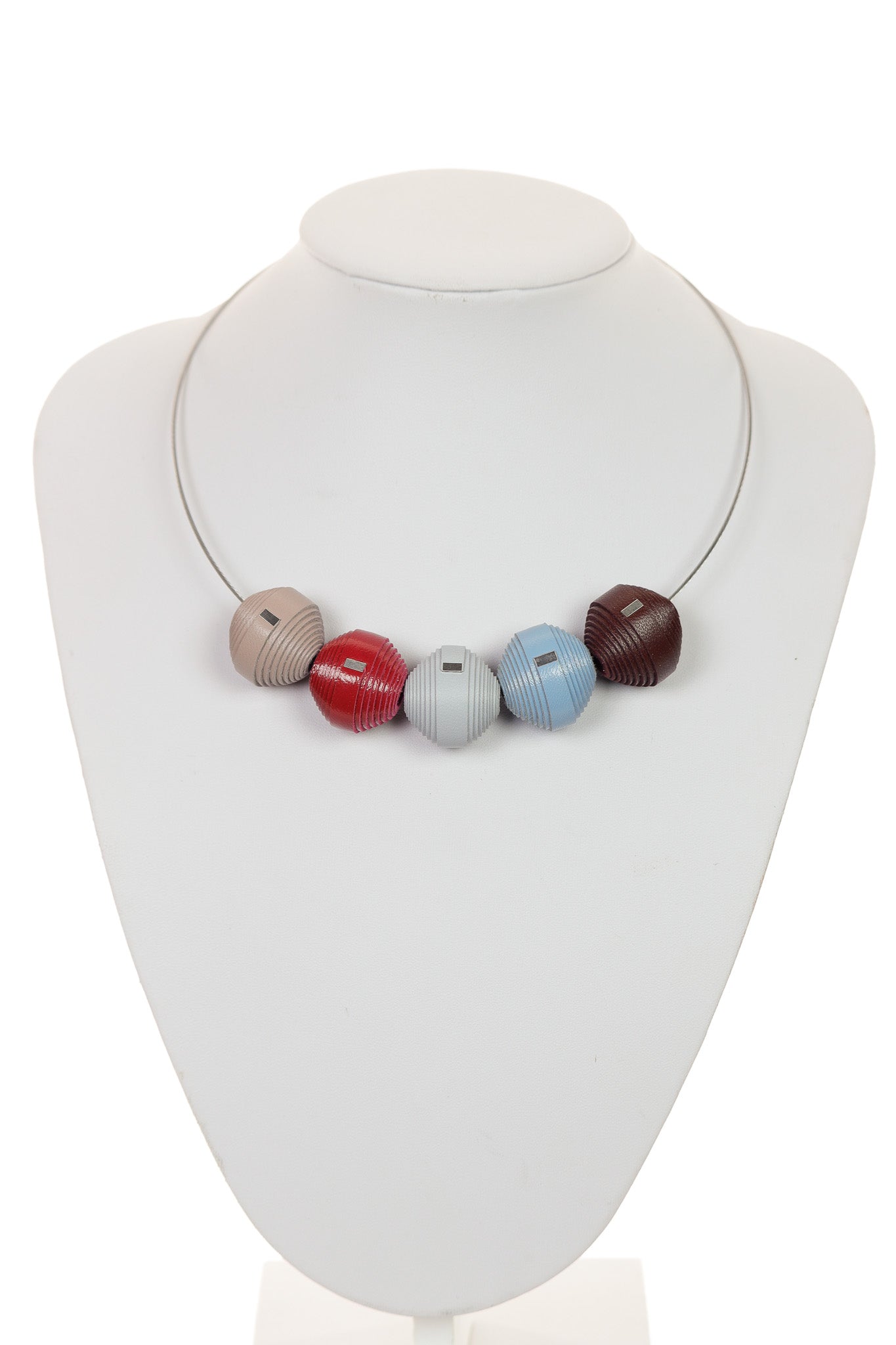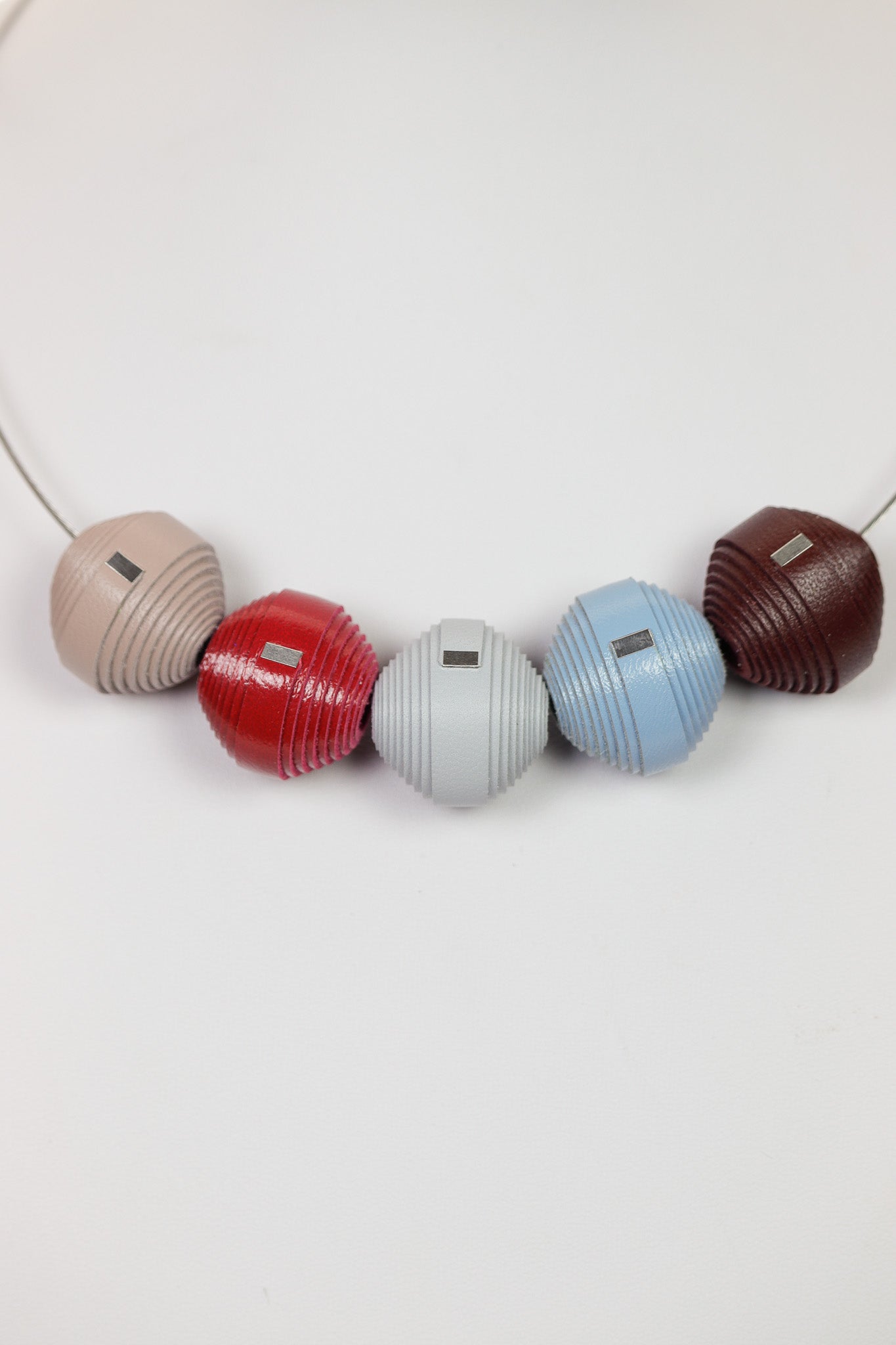 Colier plin de caracter, realizat manual din piele naturală, cu un mix de cinci bonbons în tonuri pământii și accente primare. Un accesoriu interactiv care îți oferă libertatea de a te juca cu stilul tău, aducându-ți o stare de echilibru și creativitate în fiecare zi.