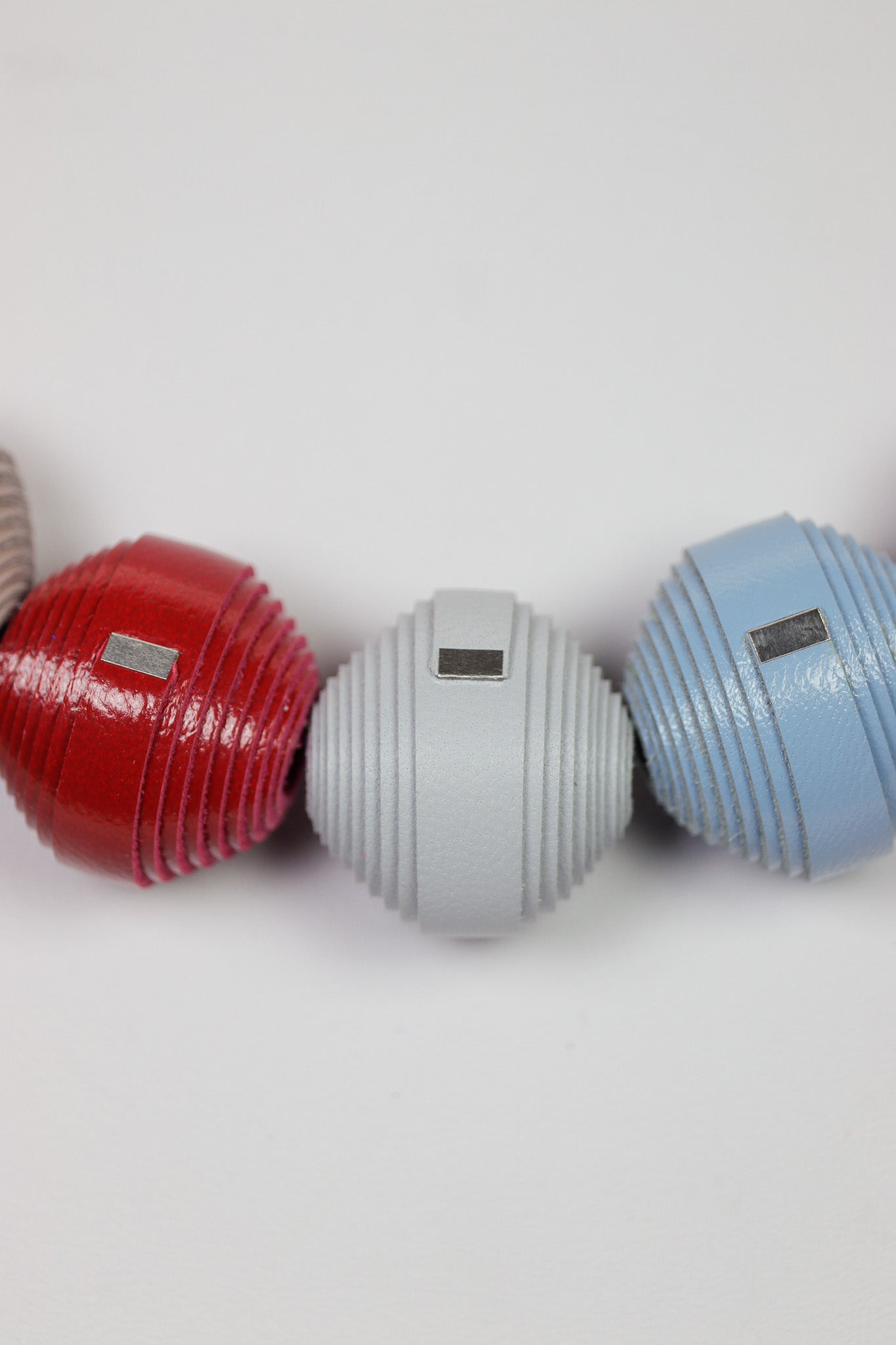 Acest colier din colecția Leatherbonbon este piesa ideală pentru momentele când vrei să adaugi un strop de personalitate unei ținute simple. Am combinat textura caldă a pielii italienești cu o paletă de culori versatilă, care trece de la albastru seren la un roșu plin de energie. Ceea ce face acest colier cu adevărat special este faptul că bonbons-urile sunt interschimbabile; poți să le schimbi ordinea pe sârmă sau să adaugi culori din alte coliere din colecția ta pentru a le asorta perfect cu outfitul zilei. Simți imediat o notă de încredere și prospețime atunci când îl porți, fiind un accesoriu care nu doar arată bine, ci te și invită să fii creativă cu propria ta imagine.