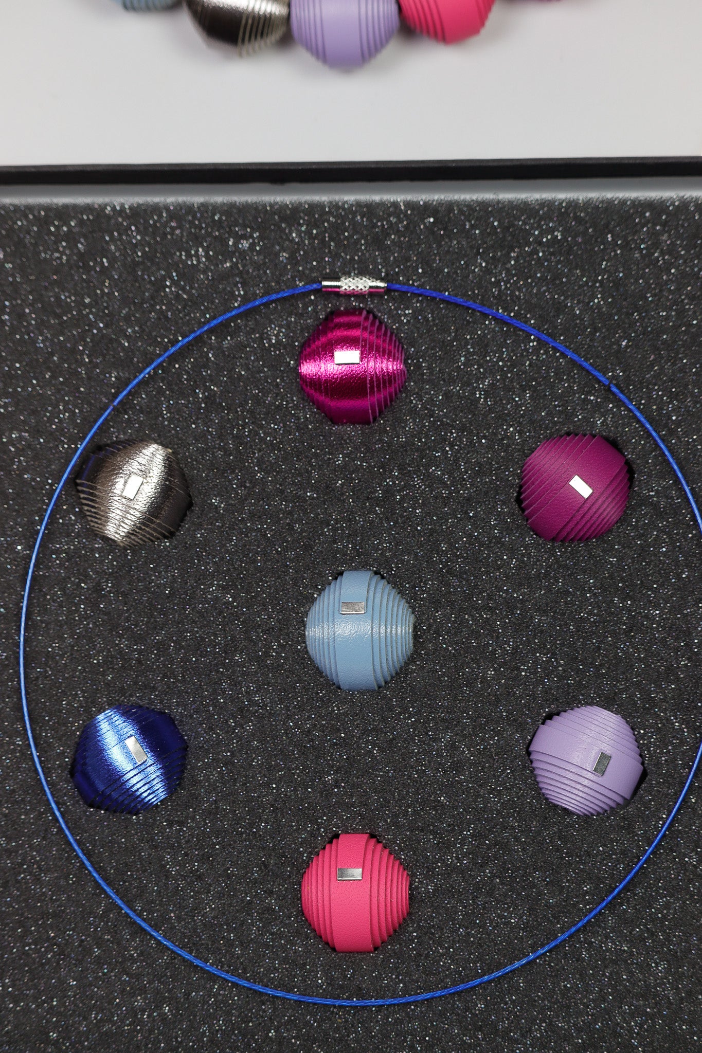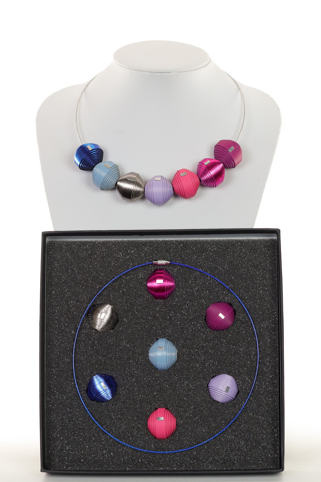 Set Premium Leatherbonbon într-o cutie neagră elegantă, ce conține 7 bonbons din piele naturală și 2 baze de colier diferite. Un kit creativ complet care îți oferă libertatea de a crea nenumărate combinații, dându-ți o stare de inspirație și bucuria de a purta în fiecare zi ceva nou.