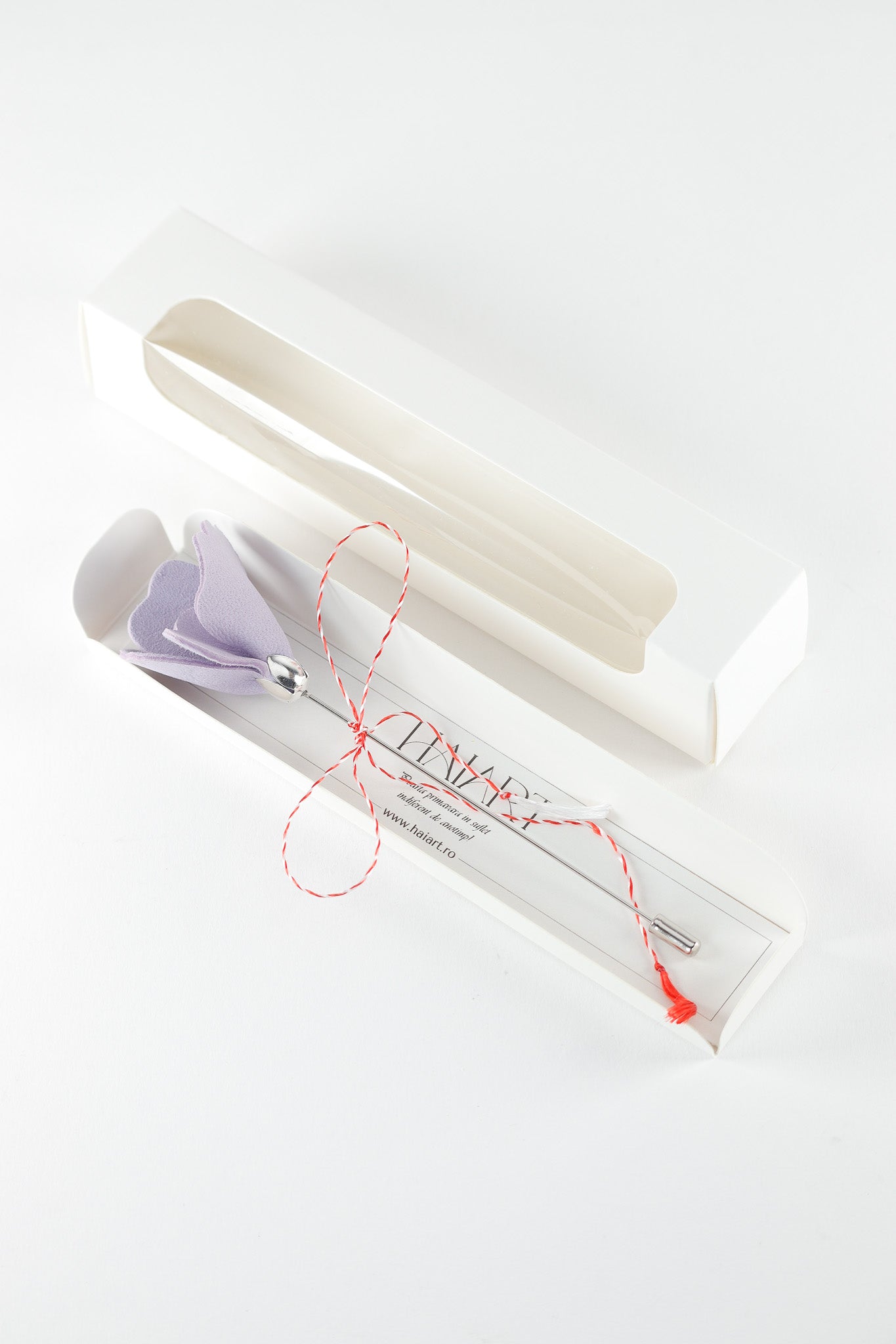 This Lilac carnation brooch is our candid interpretation of a symbol of gratitude and femininity. We chose to work with genuine Italian leather to achieve that richness of petals that faithfully imitates the tenderness of a real flower just opened under the rays of the sun. The color lilac is special – it brings a breath of fresh air and a romantic accent to even the simplest daytime outfit. Because it comes carefully packaged in an elegant display box, it is the ideal gift to give a sense of well-being and a symbol of appreciation to a loved one who loves unique accessories, created with a lot of soul.