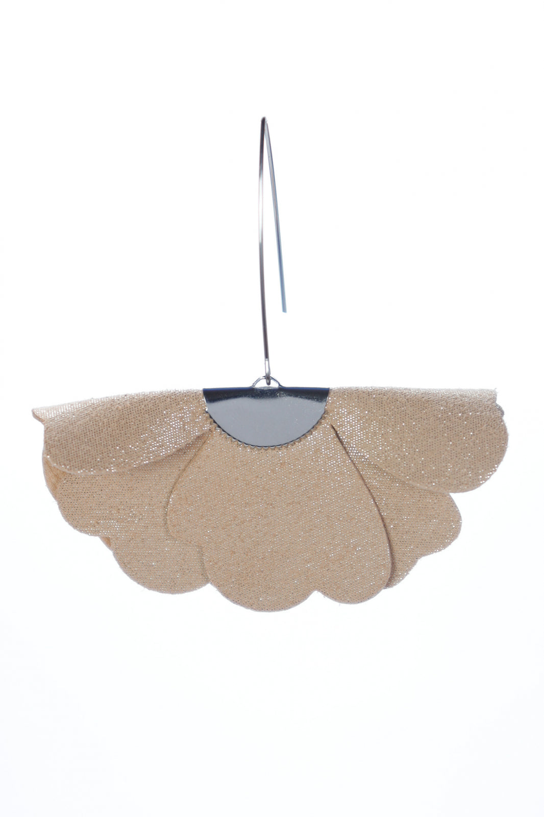 "These handmade statement earrings pay homage to nature with their delicate and feminine floral design. The overlapping petals, made of Italian leather in a warm shade of beige with glitter, create an abstract flower, full of volume and texture. The discreet hook-type clasp, made of stainless steel, harmoniously completes the design, while ensuring comfort and durability in wear. With a length of 7 cm, these earrings will attract attention and bring a sophisticated and romantic touch to any outfit, being the perfect accessory for the woman who appreciates natural elegance and refined details. Features: