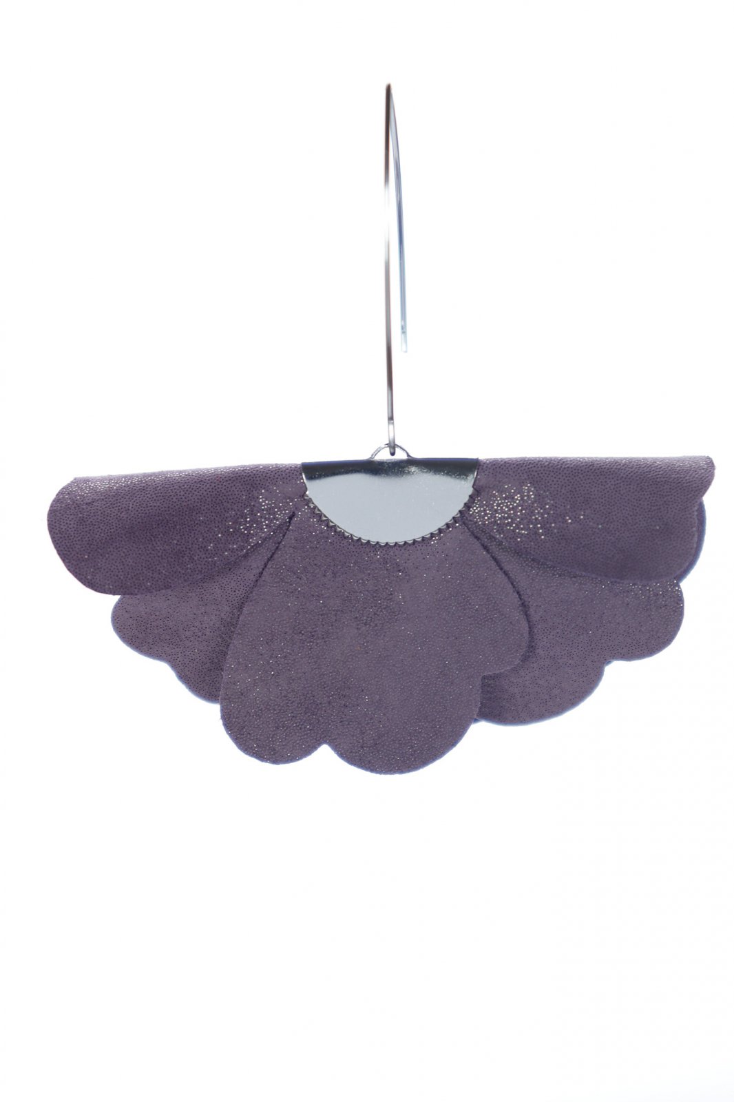 "These handmade statement earrings pay homage to nature with their delicate and feminine floral design. The overlapping petals, made of Italian leather in an elegant shade of lilac, create an abstract flower, full of volume and texture. The discreet hook-type clasp, made of stainless steel, harmoniously completes the design, while ensuring comfort and durability in wear. With a length of 7 cm, these earrings will attract attention and bring a sophisticated and romantic touch to any outfit, being the perfect accessory for the woman who appreciates natural elegance and refined details. Features: