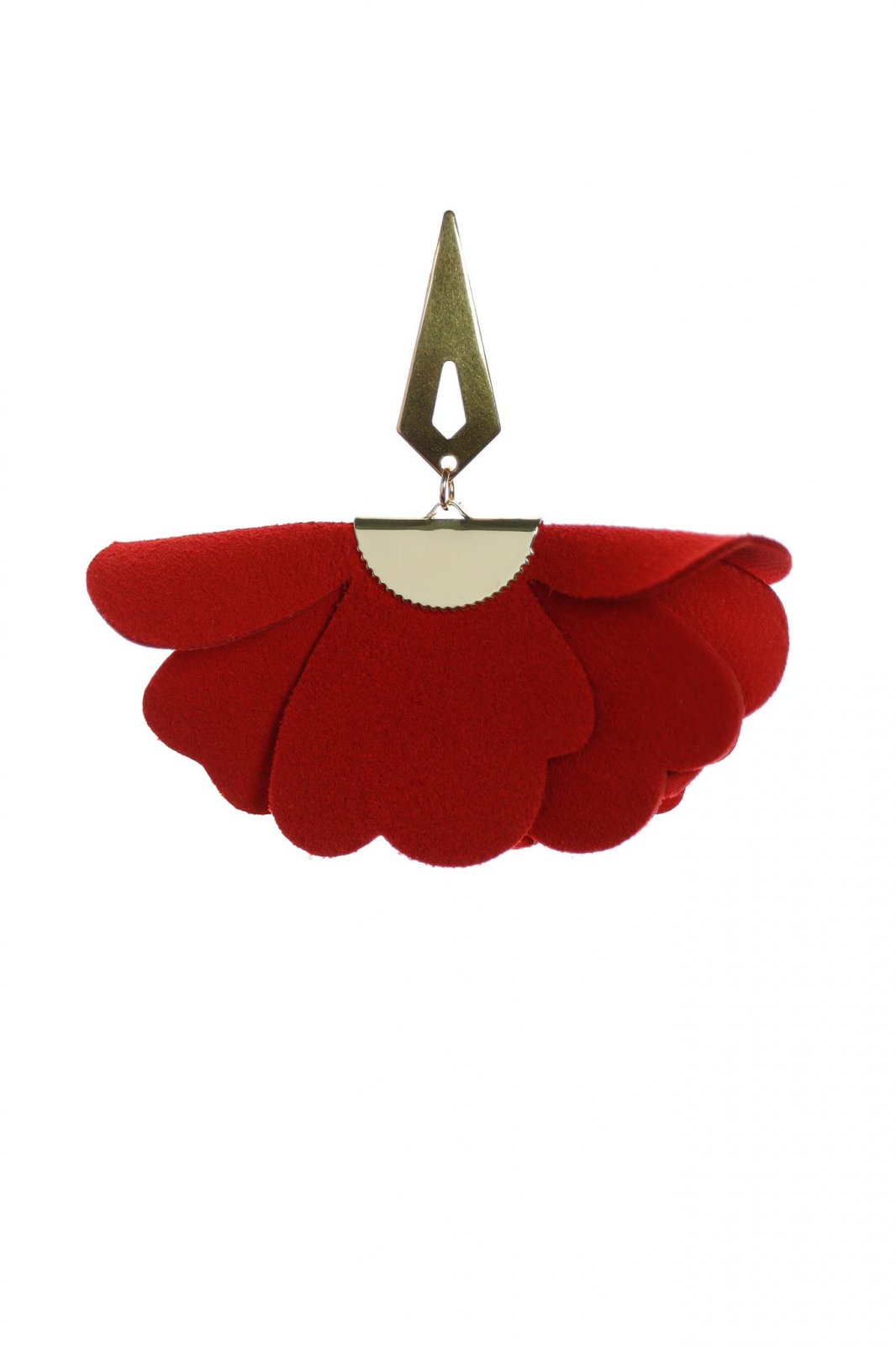 These statement earrings feature a spectacular design with overlapping petals made of genuine leather in a deep red shade, creating an elegant three-dimensional floral shape. The decorative golden geometric element at the top adds a modern and distinctive accent, perfectly balancing the composition. The vibrant shade of red adds an extra energy and femininity, being perfect for both day outfits and special occasions. The elegant and versatile design makes it a perfect accessory to add a splash of color and sophistication to any outfit.