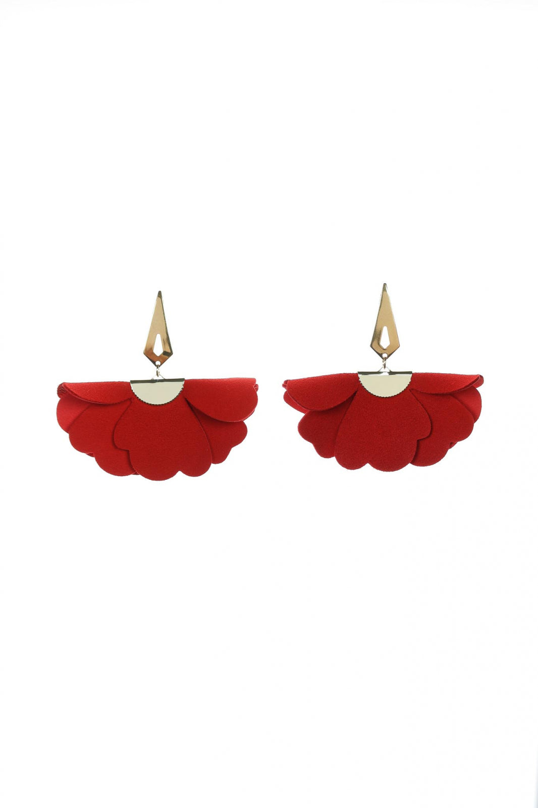 Statement earrings made of genuine leather, with a deep red floral design and gold geometric details. An elegant accessory that brings a touch of refinement and personality to any outfit.
