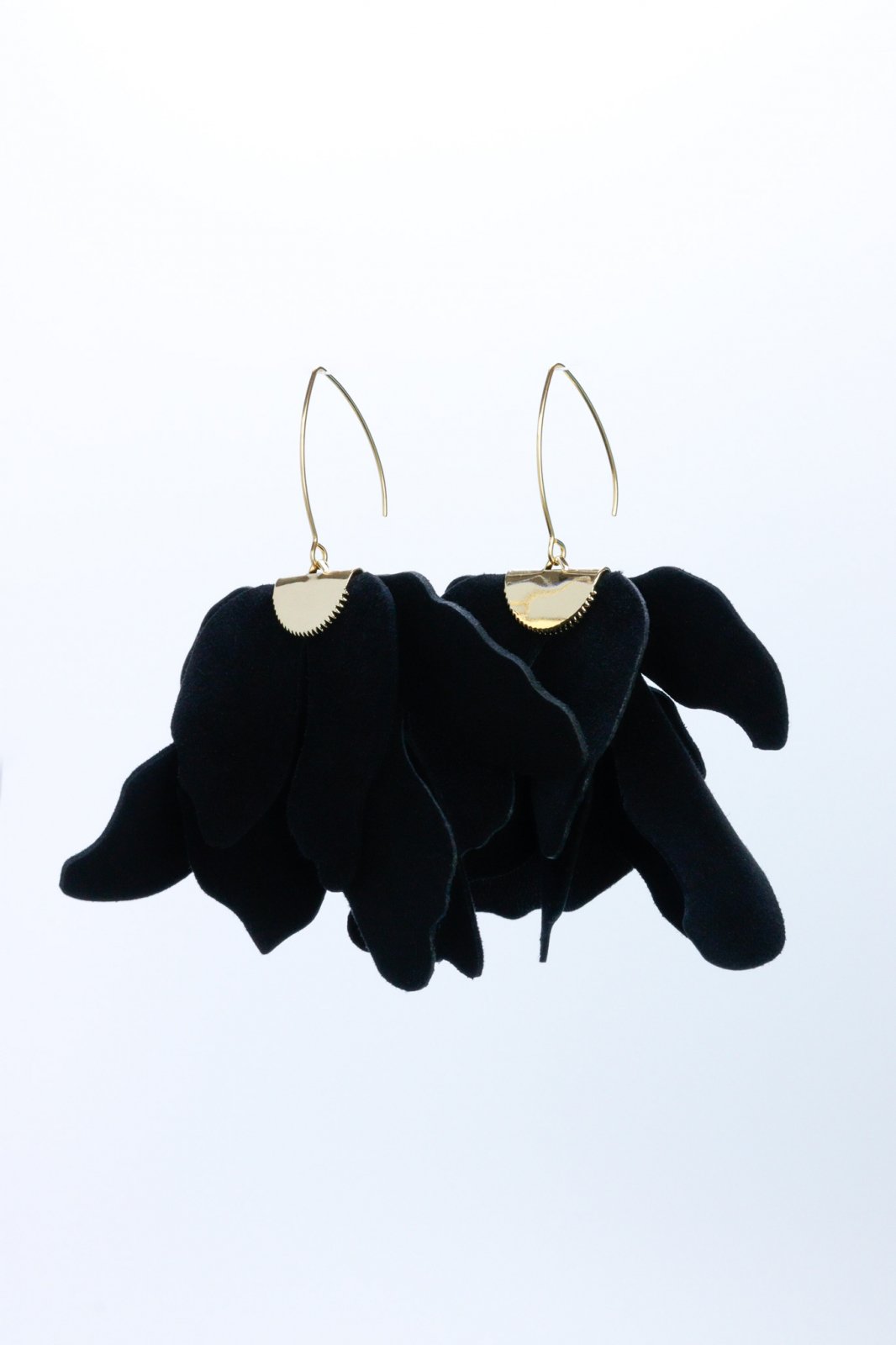 Bold, dramatic elegance. Make a sophisticated statement with these large, black flower-shaped earrings. Handcrafted from premium Italian leather, their spectacular 3D design is both lightweight and unforgettable.