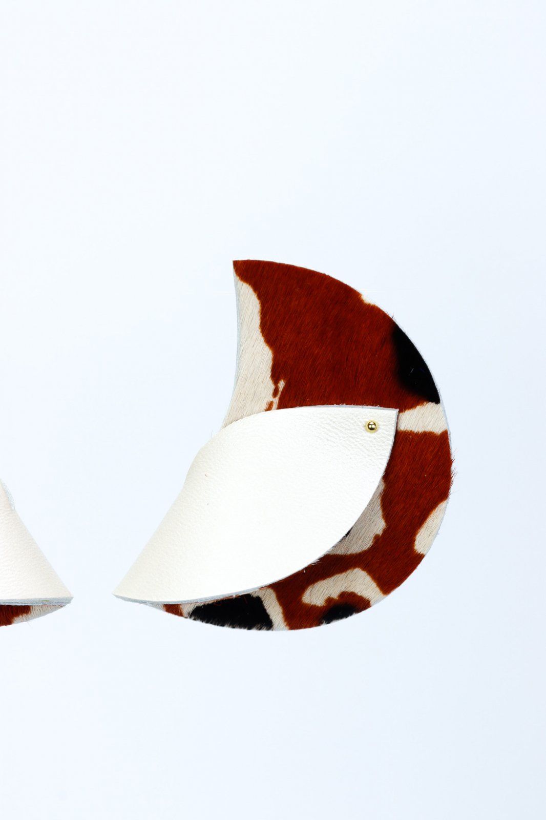 "Embrace modern art with these uniquely designed geometric earrings. Handcrafted from genuine leather, this pair features an abstract composition of shapes and colors, creating a wearable, singular piece of art. Lightweight and equipped with hypoallergenic accessories, they are perfect for the person who appreciates creative, contemporary and sophisticated design. Features: