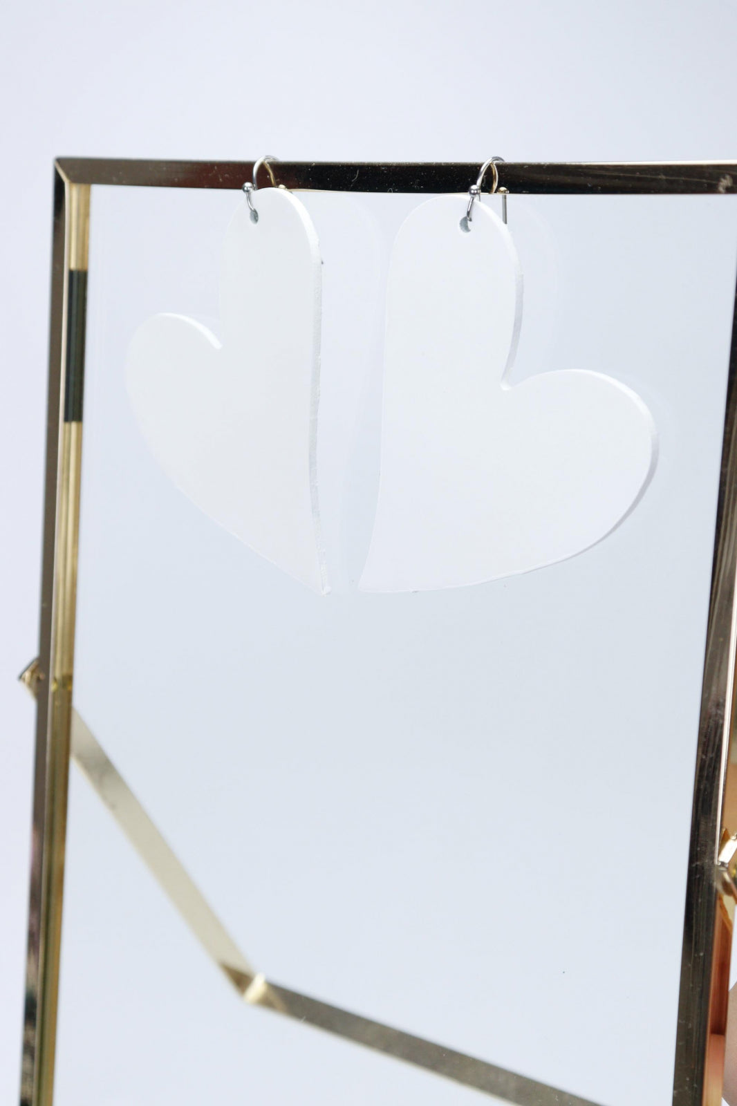 "Add a touch of pure, modern romance with these statement heart-shaped earrings, handcrafted from pristine white patent leather. Their glossy finish beautifully catches the light, while the classic heart shape offers a timeless symbol of love and femininity. Lightweight and comfortable, they are fitted with hypoallergenic stainless steel hooks, making them perfect for wearing throughout the day. A chic and elegant accessory to brighten up any outfit. Features: