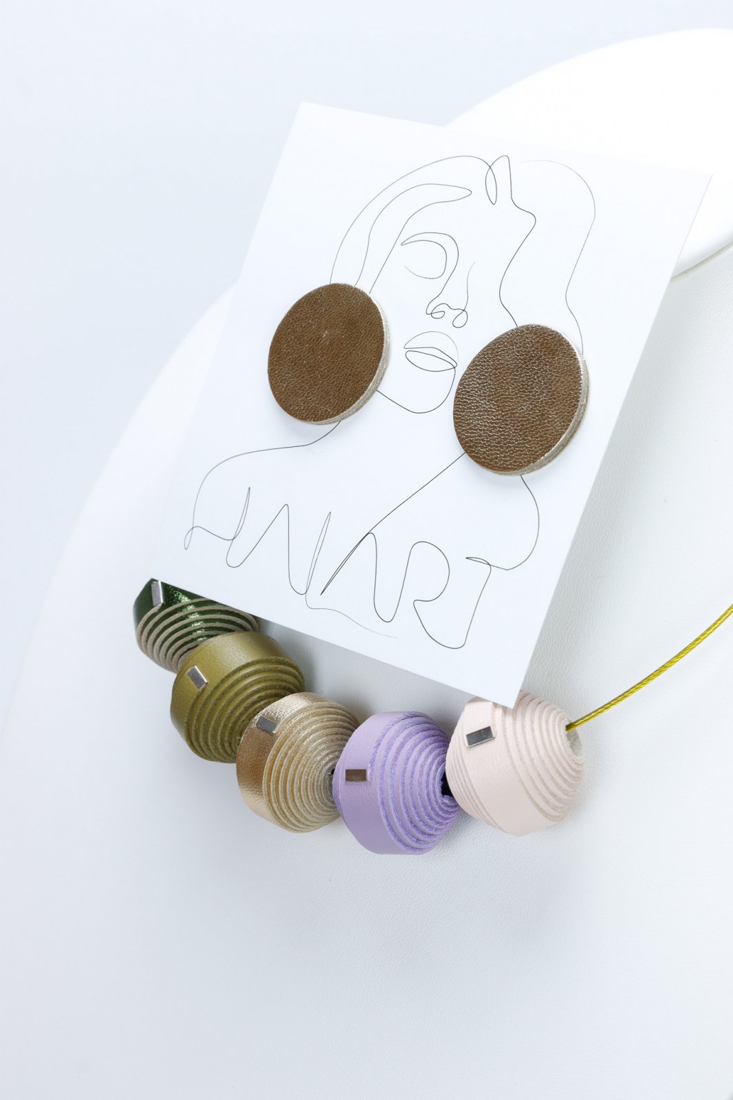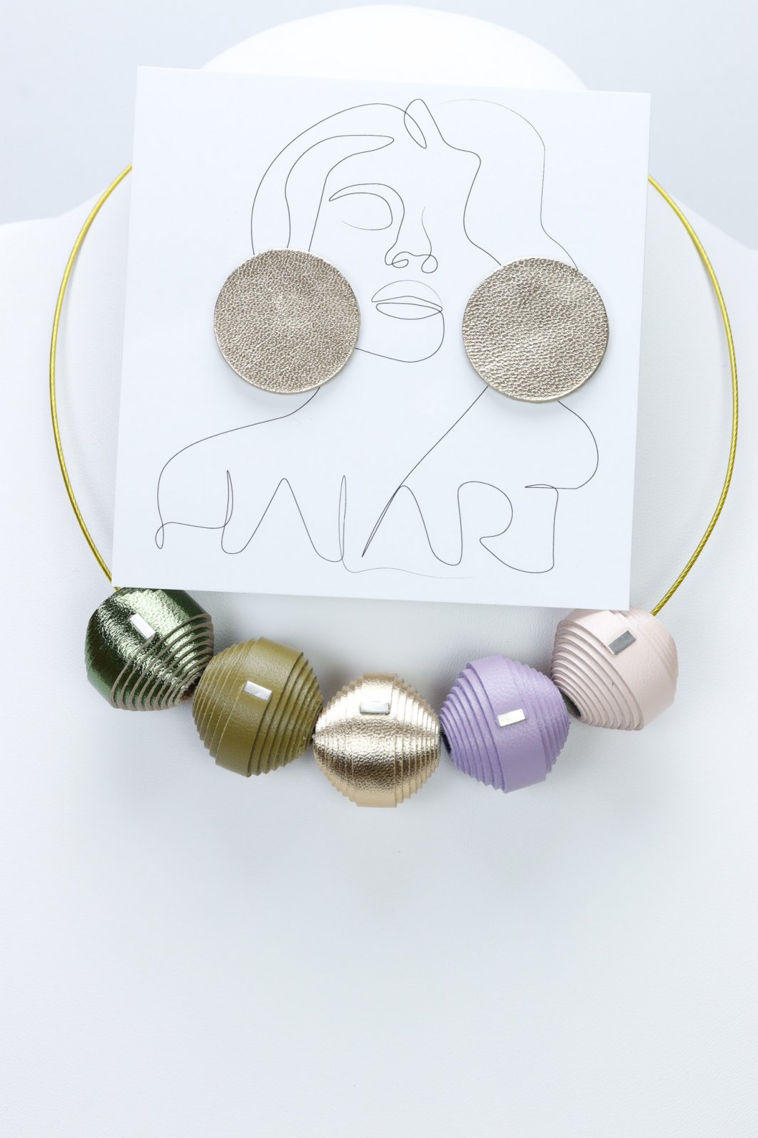 "Indulge in the coordinated, handcrafted elegance of this beautiful leather necklace and earring set (Model 591). The necklace features a unique and artistic arrangement of genuine leather beads, showcasing a harmonious blend of colors and textures. The set is completed by a pair of perfectly matching leather earrings. This ready-to-wear ensemble is a testament to craftsmanship and offers a sophisticated, cohesive look for any occasion. Features: