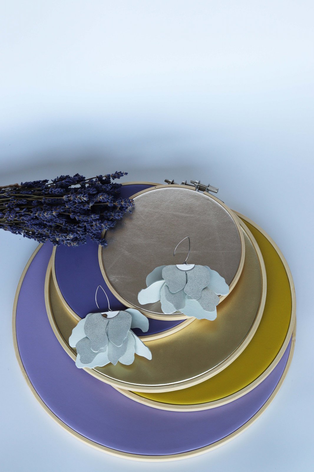 Dobd fel a megjelenésed ezekkel a nagyméretű, látványos, virág alakú, csillogó ezüst bevonatú fülbevalókkal. Valódi bőrből, aprólékosan kézzel készített, egymást átfedő szirmok egy csodálatos 3D-s virágot alkotnak, amely minden mozdulattal csillog. Igazán elbűvölő és szemet gyönyörködtető darab, meglepően könnyűek és hipoallergén rozsdamentes acél akasztókkal vannak ellátva a kényelmes egész éjszakai viselet érdekében. Jellemzők: