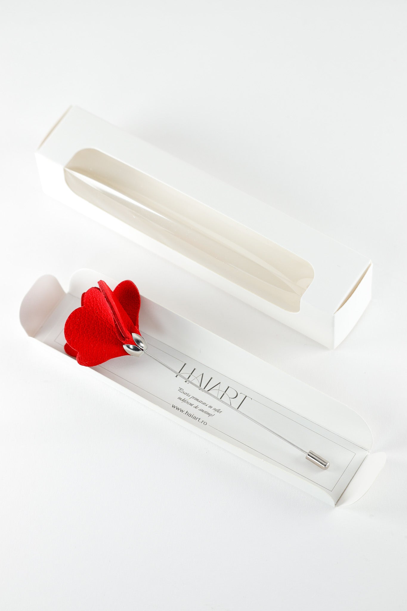 Broșa garoafă în nuanța Fiery Red este simbolul suprem al feminității și al forței. Realizată manual din piele naturală, această piesă captează privirile prin intensitatea culorii și finețea execuției. Roșul „fiery” aduce un contrast superb pe un sacou negru, gri sau camel, transformând o ținută obișnuită într-una plină de personalitate.