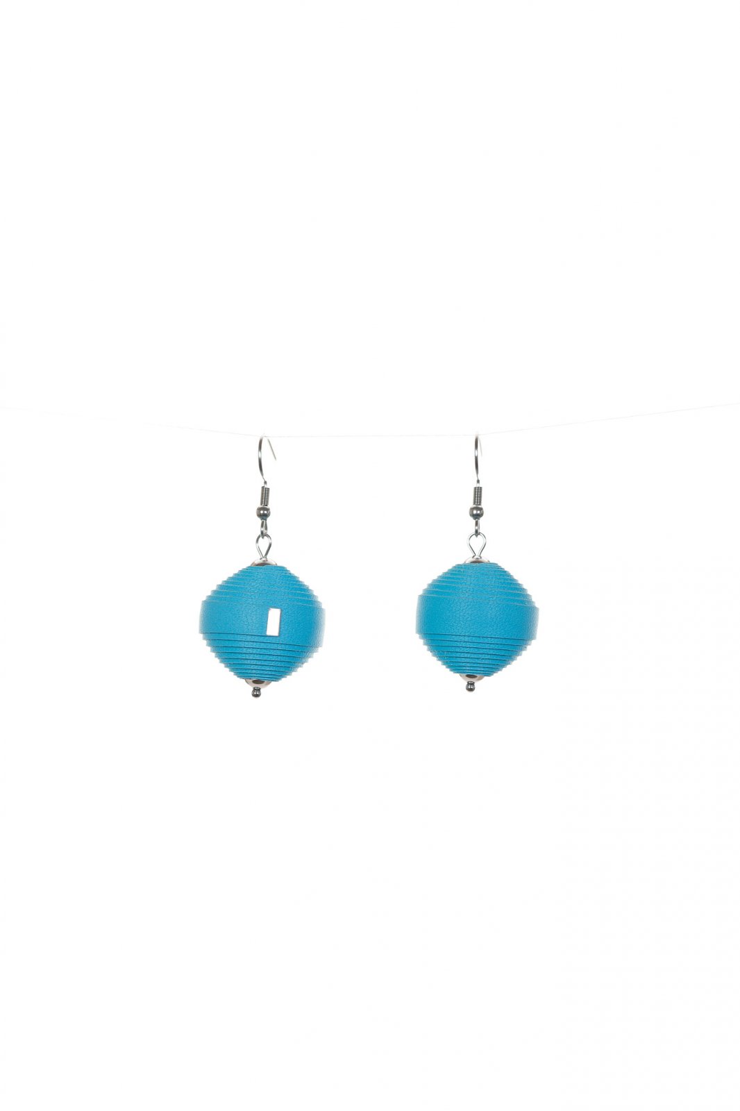 Clar și Șic. Prezentați prin designul iconic Leatherbonbon, acești cercei lucrați manual etalează o sferă texturată unică din piele albastru cer proaspăt. O pată de culoare versatilă și elegantă.