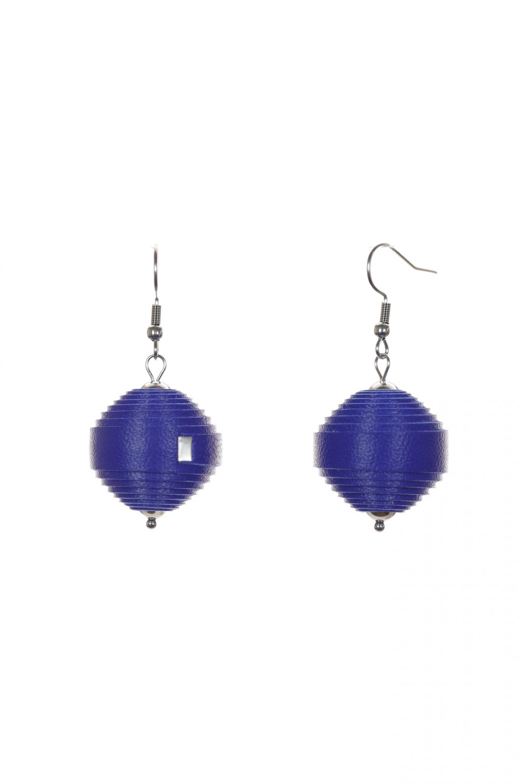 O pată de Albastru. Prezentați prin designul iconic Leatherbonbon, acești cercei lucrați manual etalează o sferă texturată unică din piele albastră vibrantă, adăugând un accent stilat și versatil.