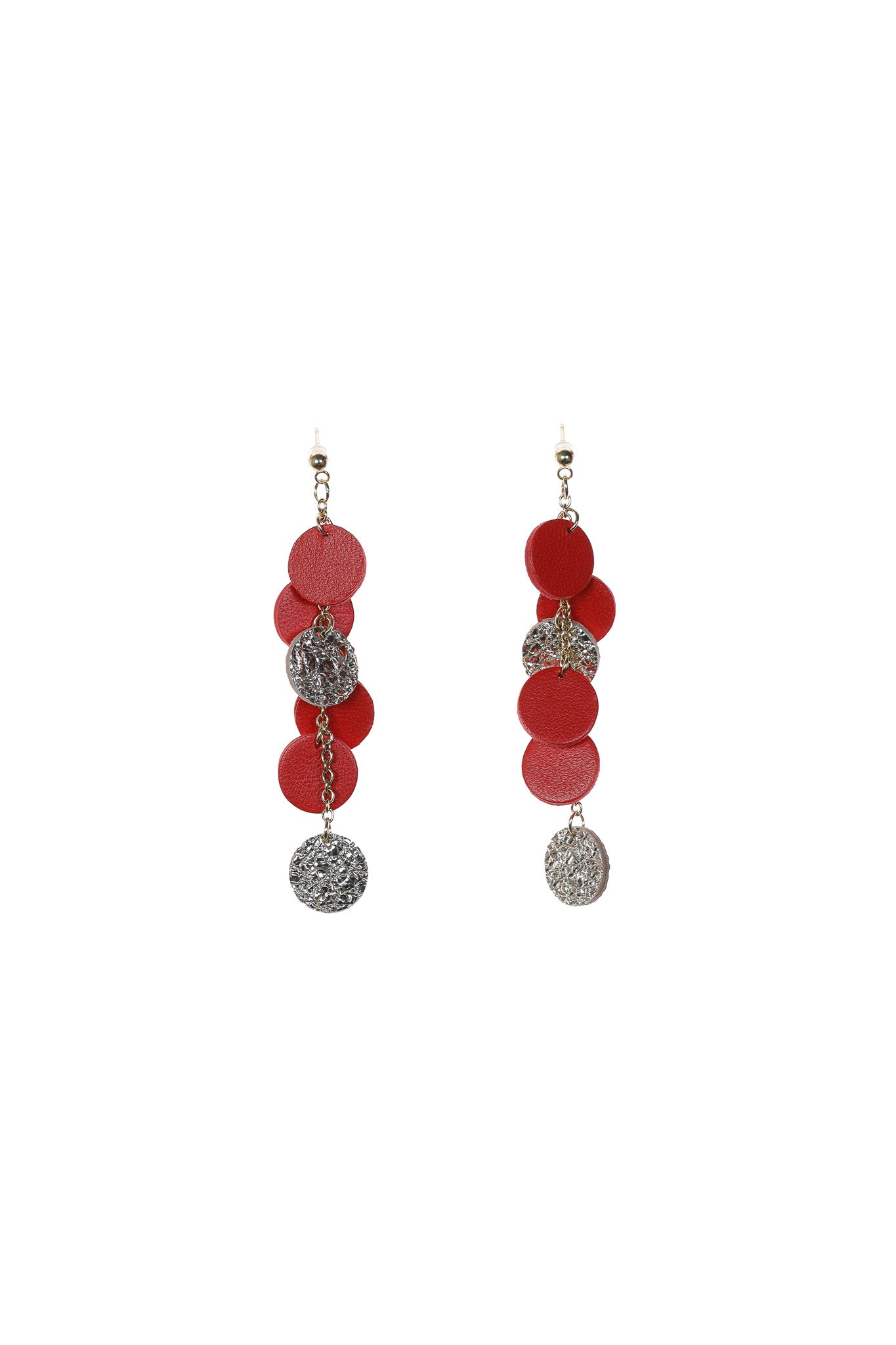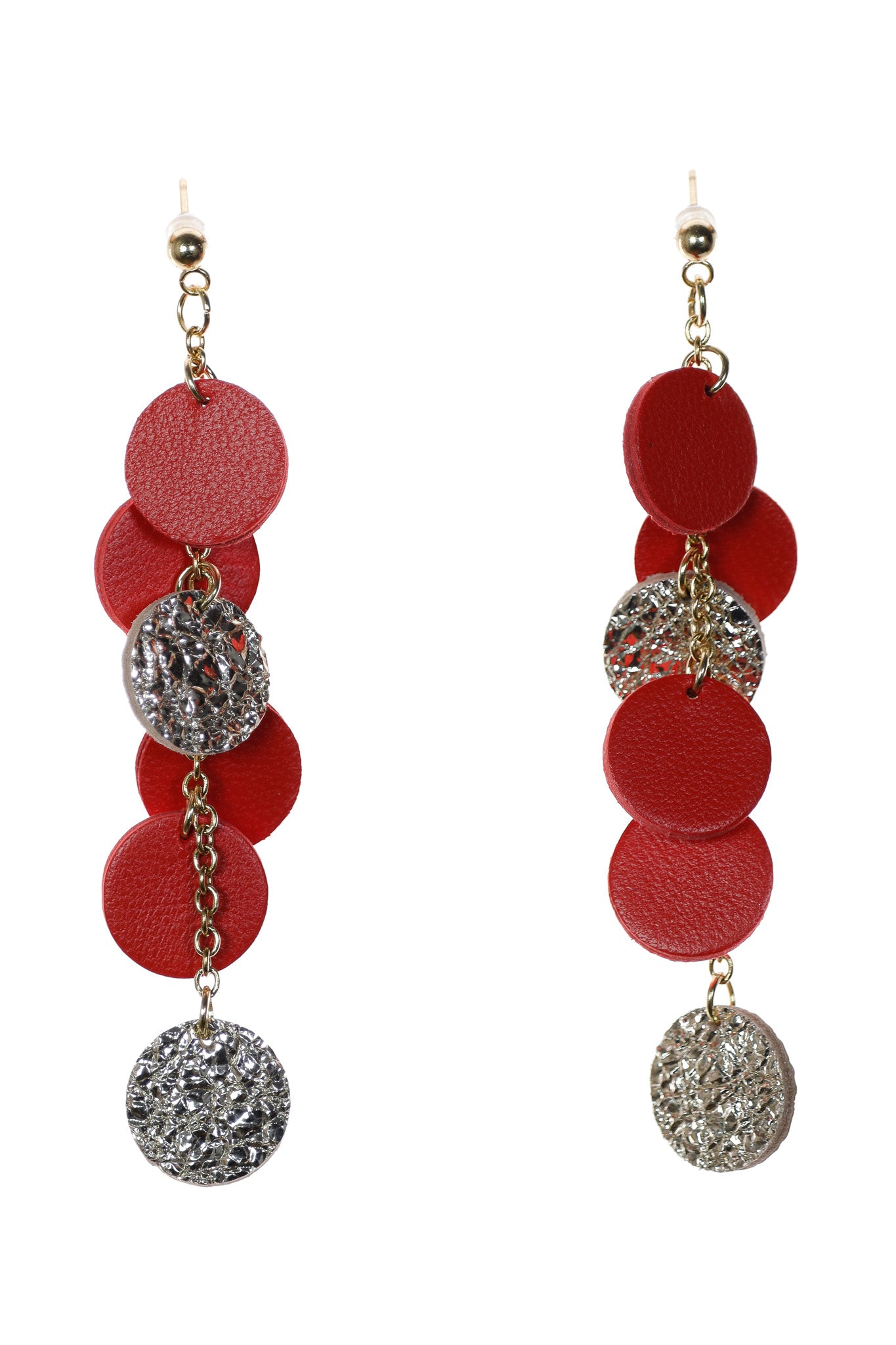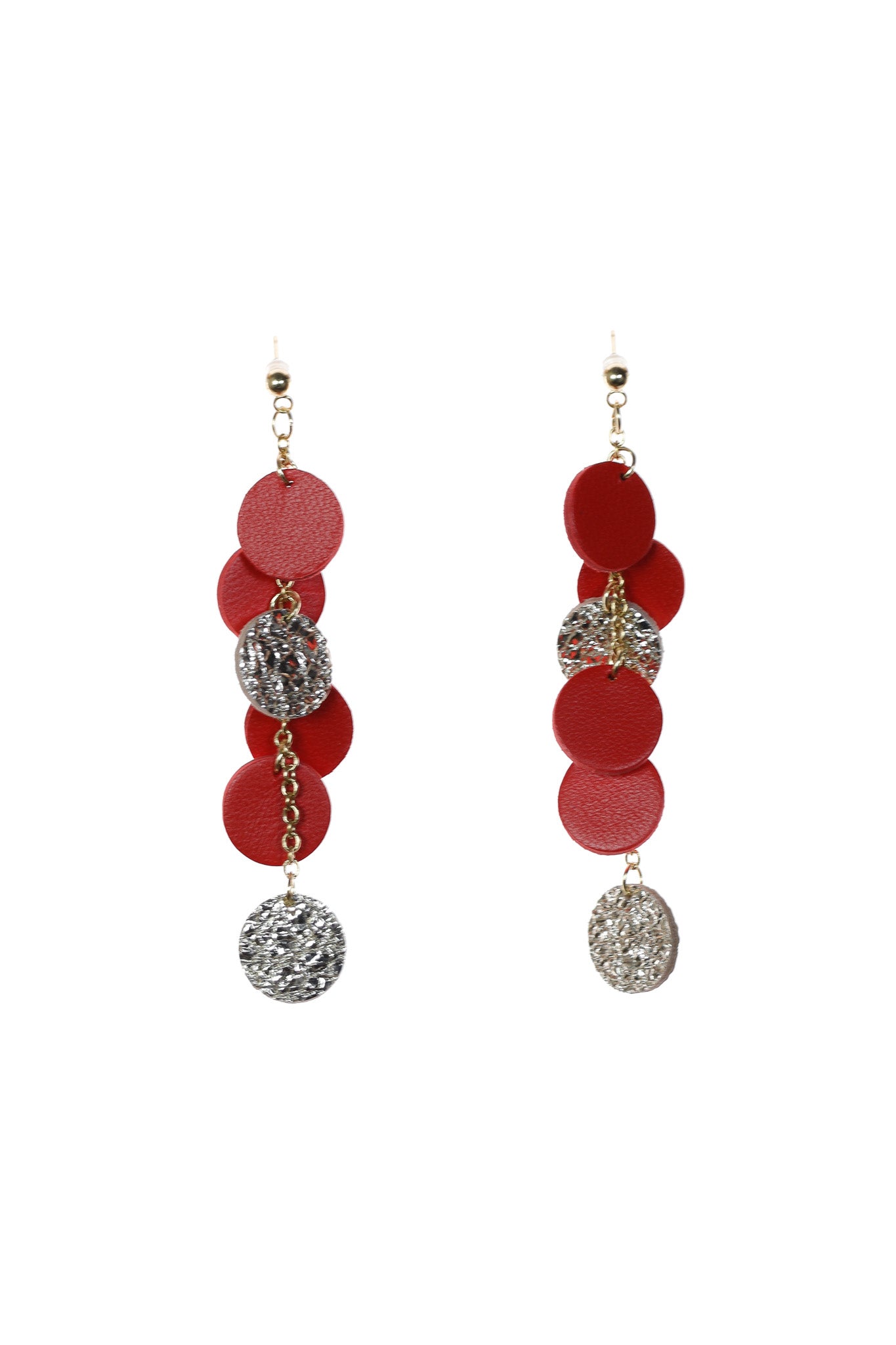 Acești cercei sunt vedeta colecției tale de accesorii! Lungimea lor de 8 cm arată fantastic și echilibrează perfect ținuta. Discurile din piele naturală roșie sunt puse în valoare de discurile Argintii Crăpate, care adaugă o textură super interesantă și un sparkle discret.