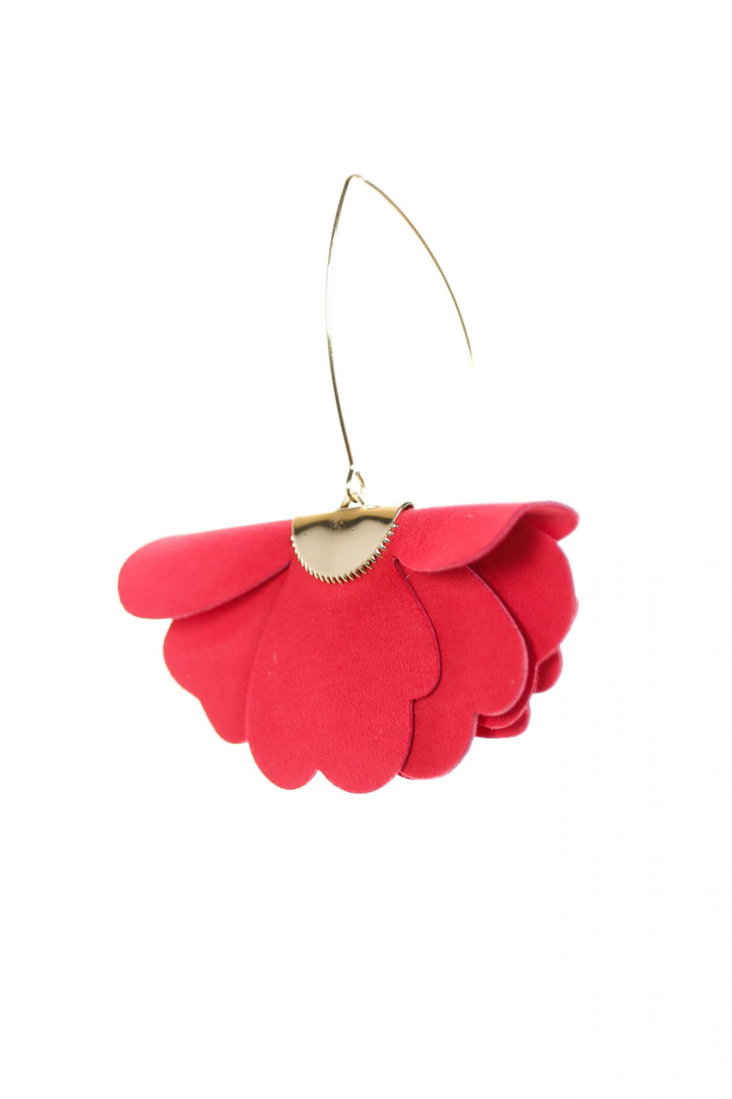 Cercei statement din piele naturală cu un design floral tridimensional într-o nuanță de roșu zmeură vibrant. Un accesoriu spectaculos care aduce un plus de energie și personalitate oricărei ținute.