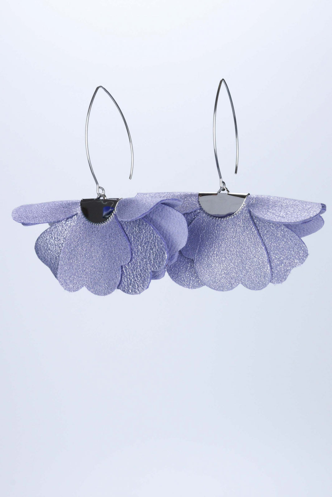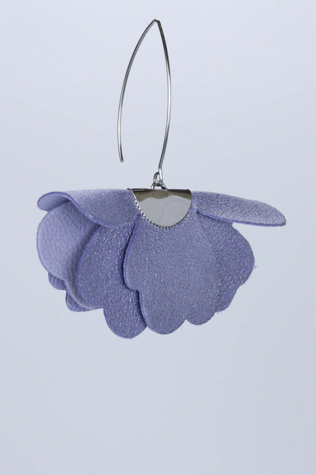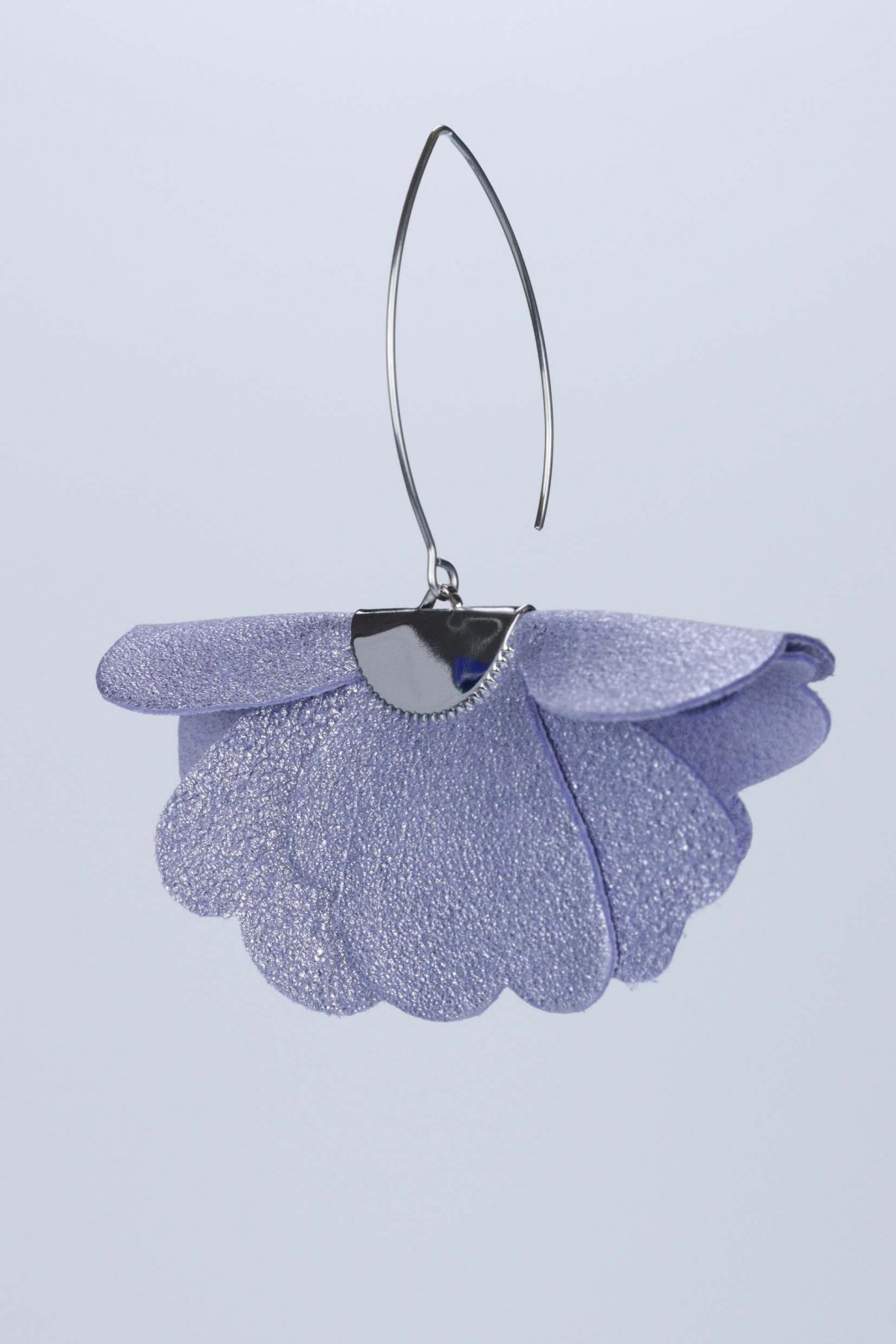 Sclipire lila feerică. Lucrați manual din piele naturală, acești cercei mici, în formă de floare, într-un finisaj lila încântător cu sclipici adaugă o notă dulce, magică și delicată oricărui look.
