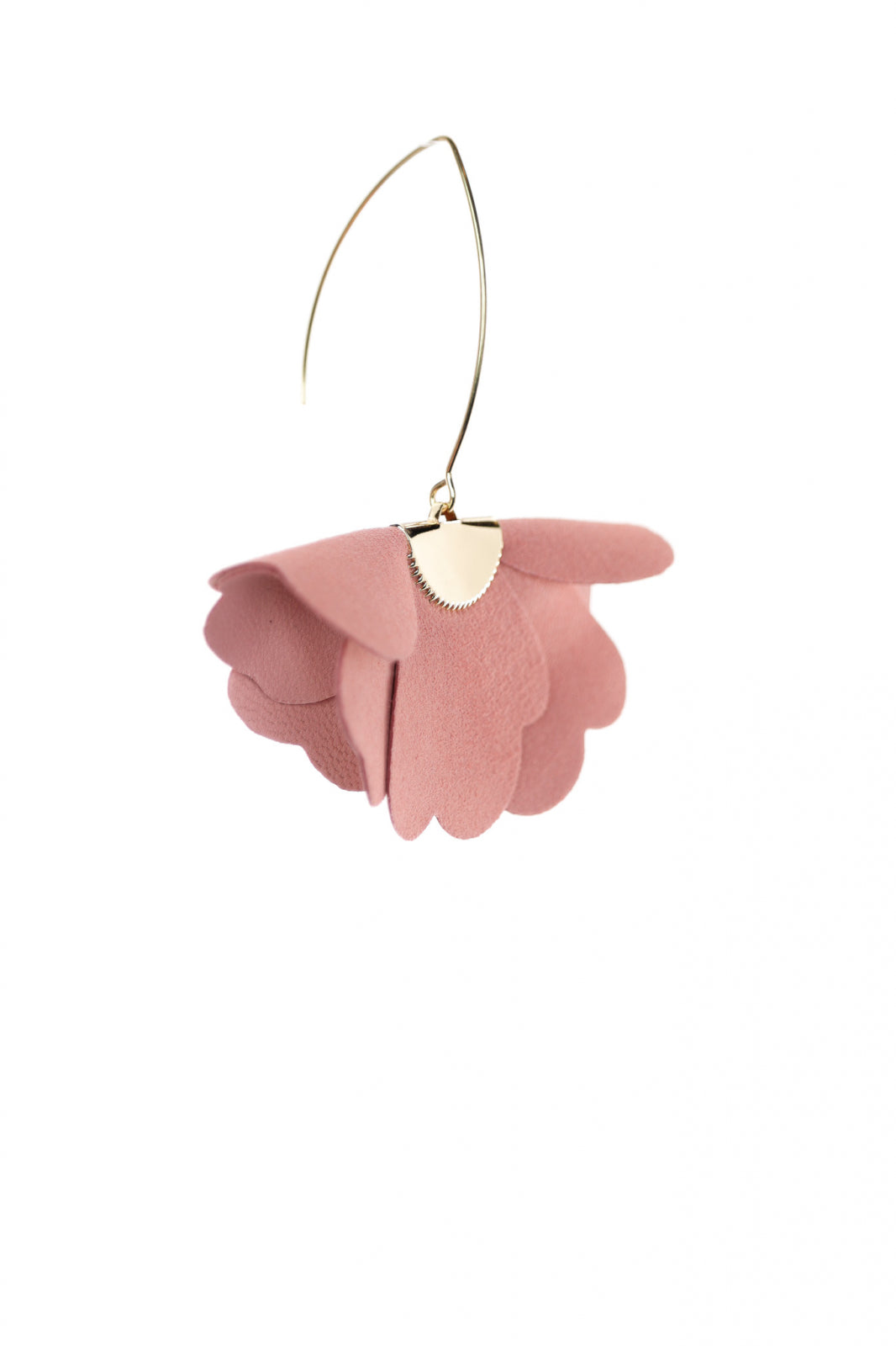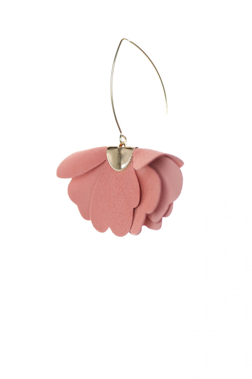 Eleganță subtilă, romantică. Lucrați manual din piele naturală într-o nuanță caldă de somon, acești cercei florali 3D oferă o notă versatilă de feminitate delicată pentru orice ocazie.