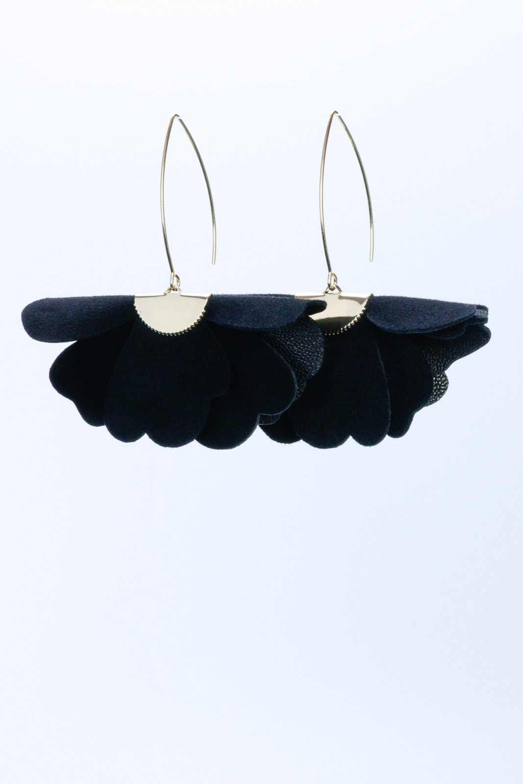 "Îmbrățișează eleganța atemporală cu acești cercei clasici în formă de floare mică, de culoare neagră. Lucrați manual din piele italiană naturală, petalele suprapuse creează un efect 3D delicat, adăugând o notă de sofisticare oricărui look. Ușori și versatili, cu tije din oțel inoxidabil hipoalergenic, sunt un accesoriu esențial atât pentru zi, cât și pentru seară.Caracteristici: