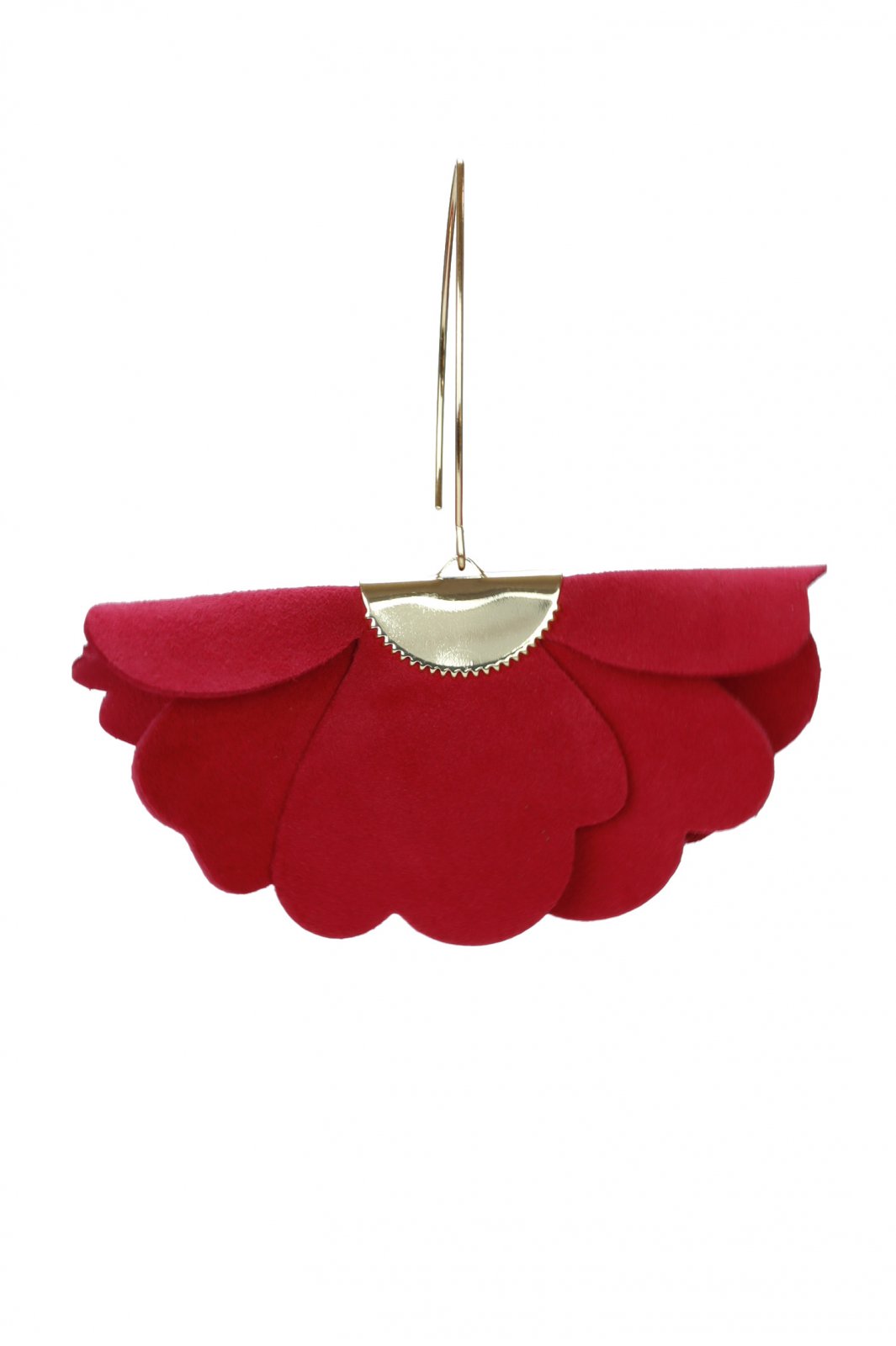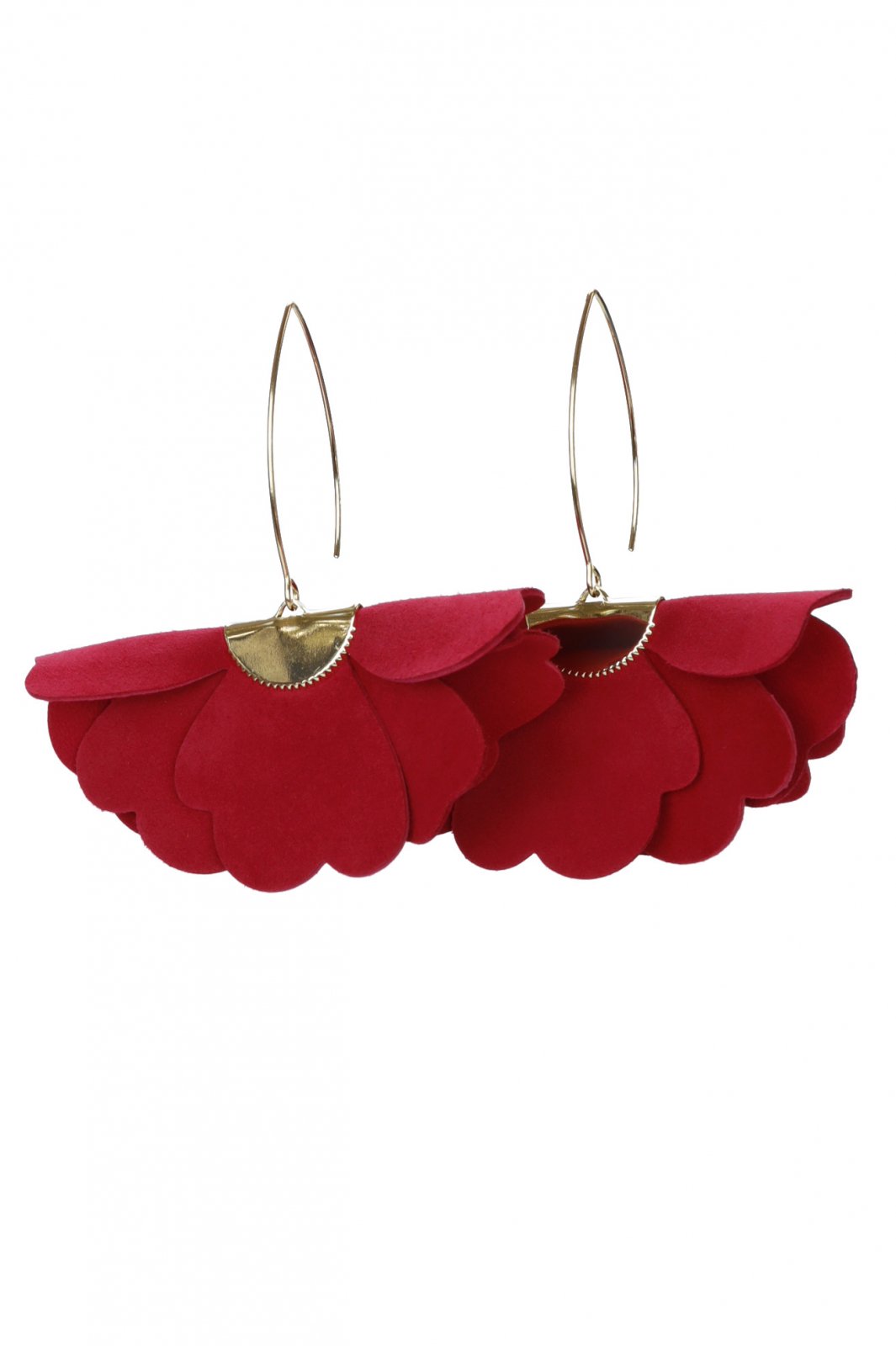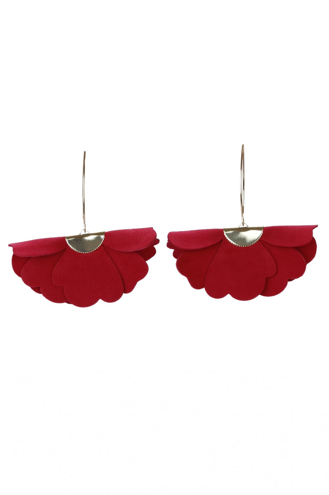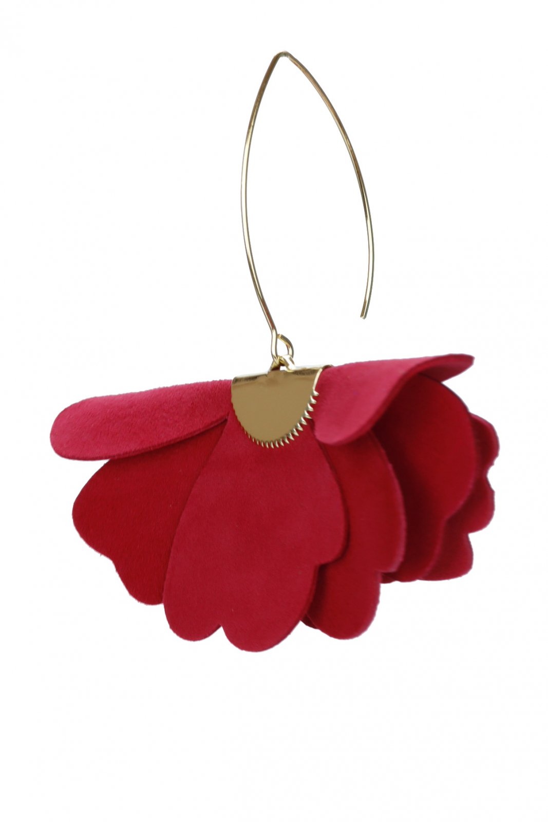 Eleganță fără efort. Acești cercei mici, fermecători, în formă de floare roșie sunt lucrați manual din piele italiană, având un design 3D delicat și tije din oțel hipoalergenic pentru o pată perfectă de culoare de zi cu zi.