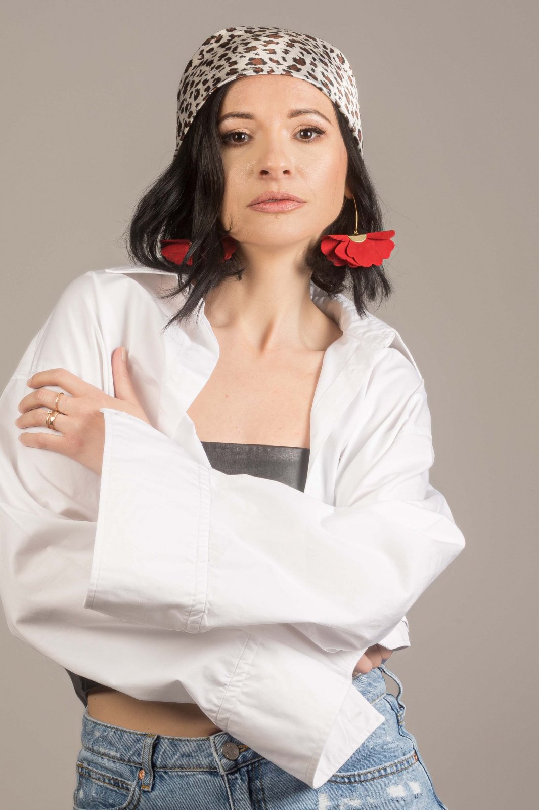 "Descoperă farmecul atemporal cu acești cercei delicați în formă de floare mică, într-un roșu clasic. Lucrați manual din piele italiană naturală, designul lor cu petale suprapuse oferă un efect 3D subtil. Ușori și confortabili, cu o lungime de aproximativ 7 cm și tije din oțel inoxidabil hipoalergenic, sunt accesoriul perfect pentru a adăuga o notă de eleganță vibrantă și lejeră stilului tău de zi cu zi.Caracteristici: