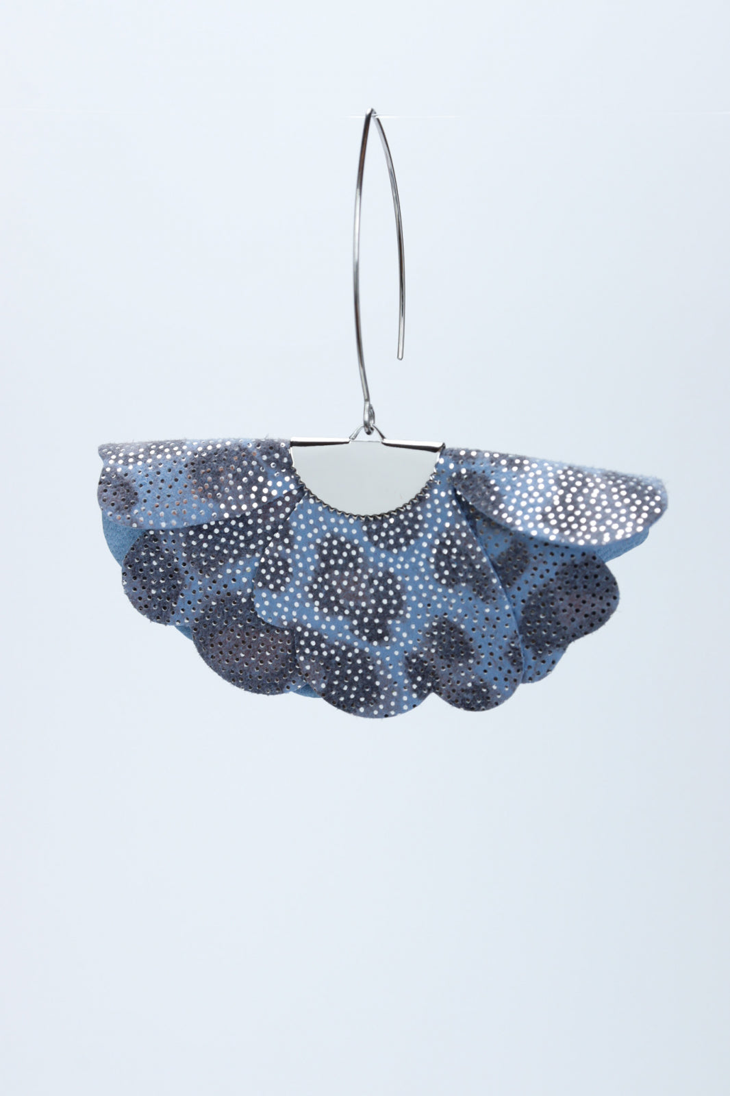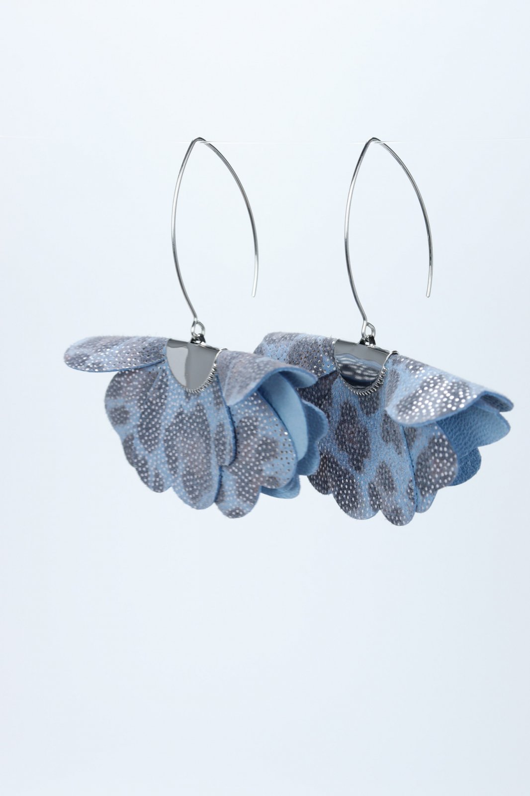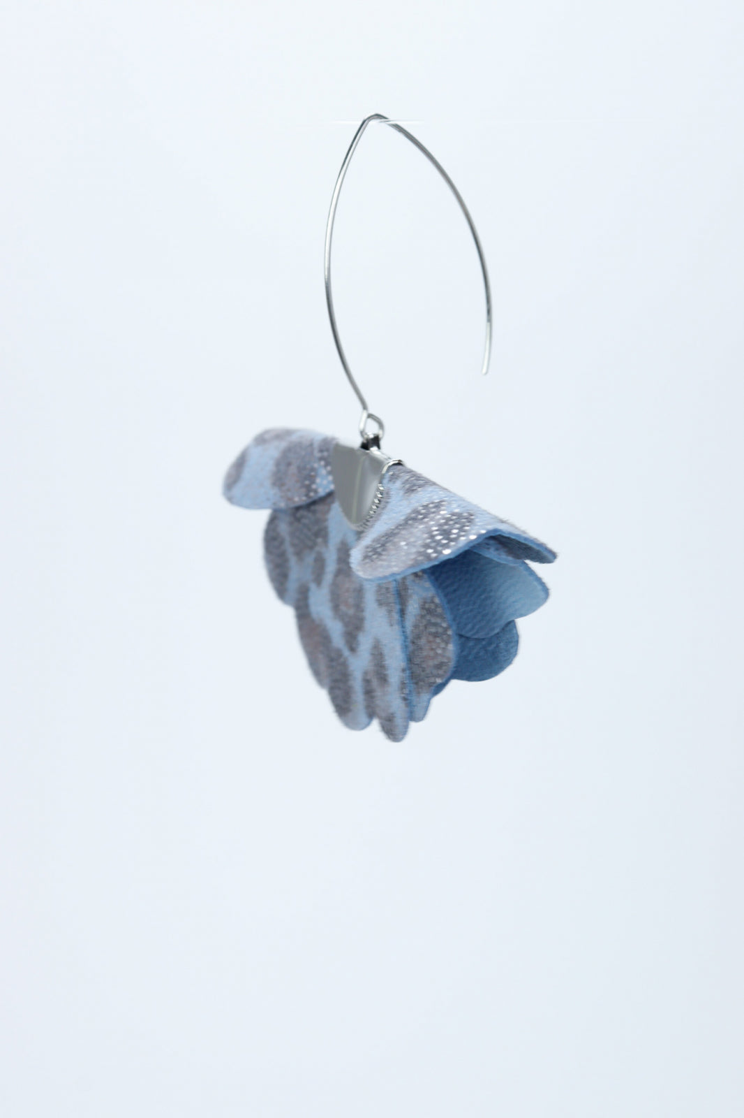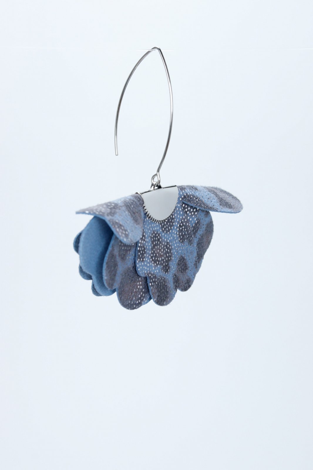 Profunzime florală 3D, elegantă. Acești cercei de 7 cm lucrați manual prezintă un design floral frumos, suprapus, în piele italiană, adăugând profunzime și eleganță oricărei colecții de accesorii.