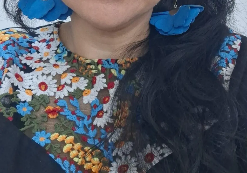"Acești cercei statement, lucrați manual, aduc un omagiu naturii prin designul lor floral delicat și feminin. Petalele suprapuse, realizate din piele italiană într-o nuanță elegantă de lila, creează o floare abstractă, plină de volum și textură. Închizătoarea discretă tip cârlig, realizată din oțel inoxidabil, completează armonios designul, asigurând totodată confort și durabilitate în purtare. Cu o lungime de 7 cm, acești cercei vor atrage atenția și vor aduce o notă sofisticată și romantică oricărei ținute, fiind accesoriul perfect pentru femeia care apreciază eleganța naturală și detaliile rafinate.Caracteristici: