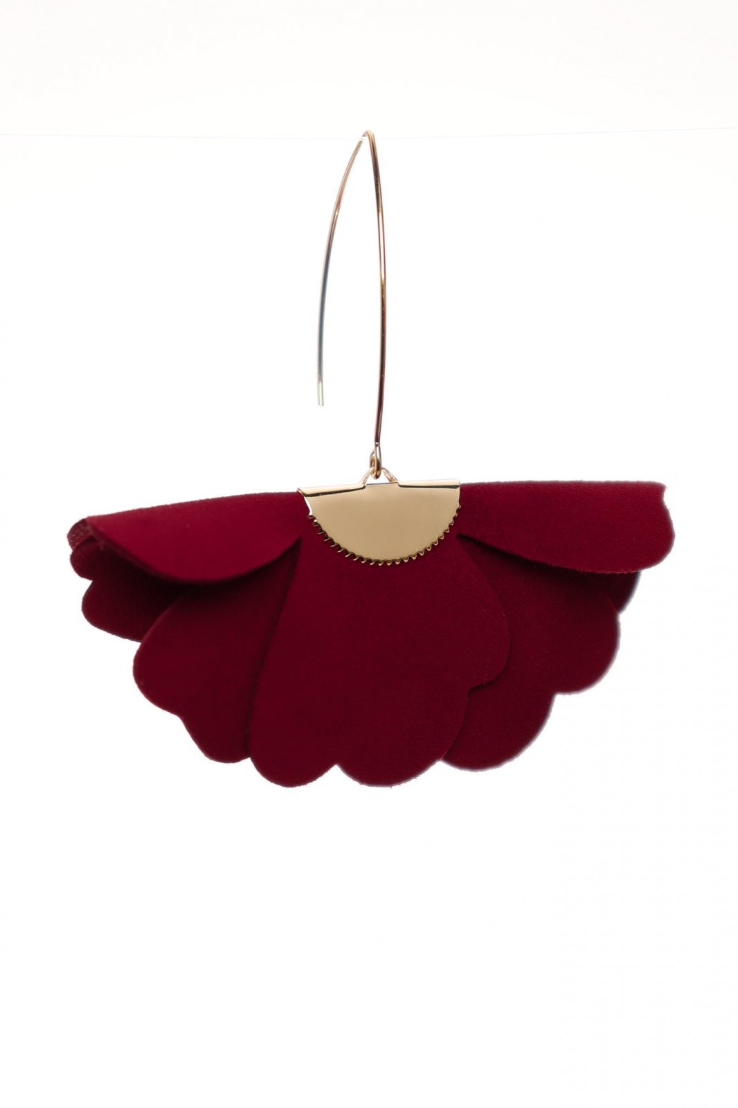 Bogat & Rafinat. O cascadă de trei flori din piele lucrate manual într-o nuanță profundă de burgundy creează un cercel statement sofisticat de 9 cm, perfect pentru a adăuga o notă de dramatism și eleganță.