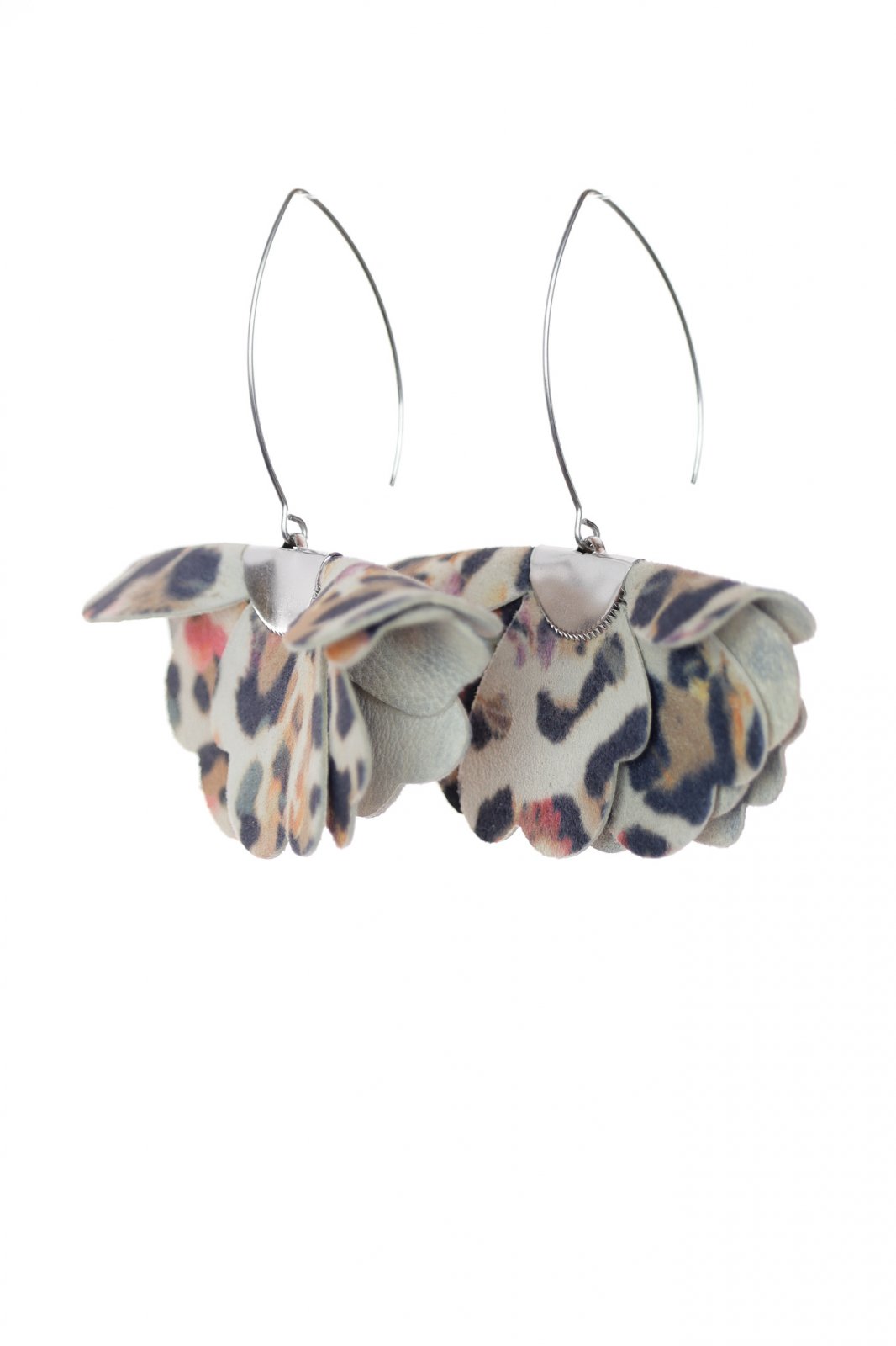 Acești cercei atrag toate privirile cu un design floral îndrăzneț și un print captivant. Lucrați manual din piele naturală într-un "print animal colorat", cerceii aduc o notă de originalitate și stil oricărei ținute.