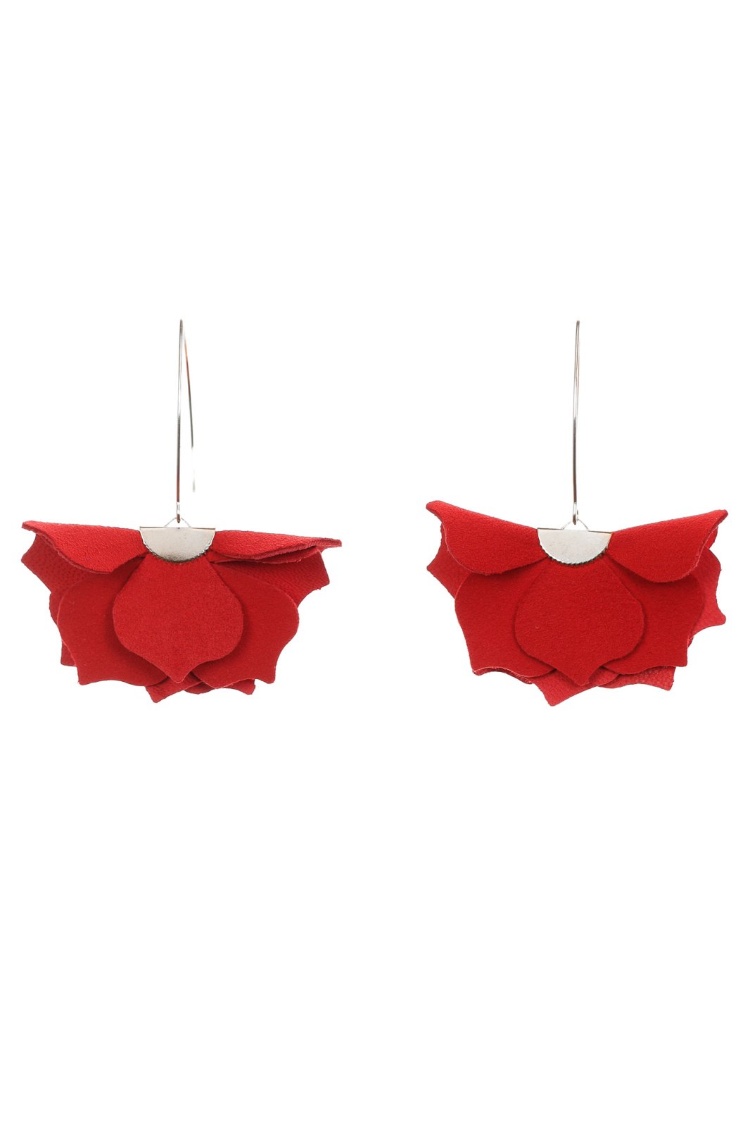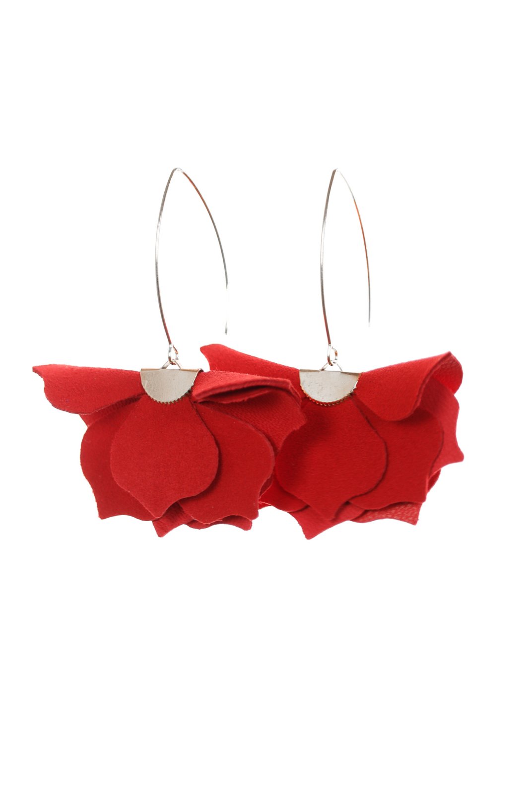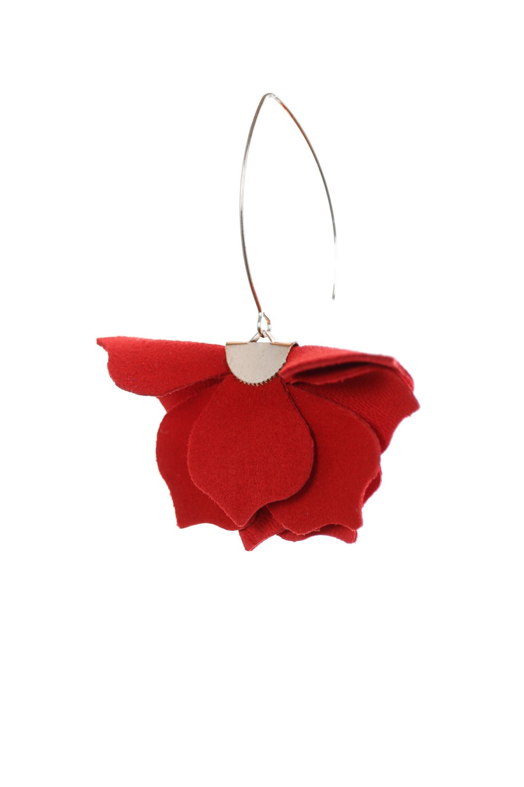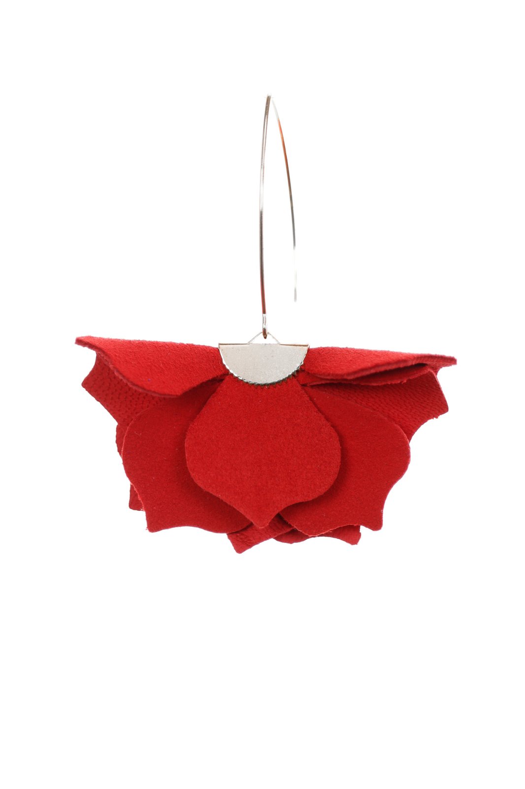 Pasional și îndrăzneț. Un evantai de petale din piele lucrat manual, care se deschide grațios, într-un roșu vibrant, pasional, accentuat cu argintiu elegant. Un statement modern de încredere și stil sofisticat.