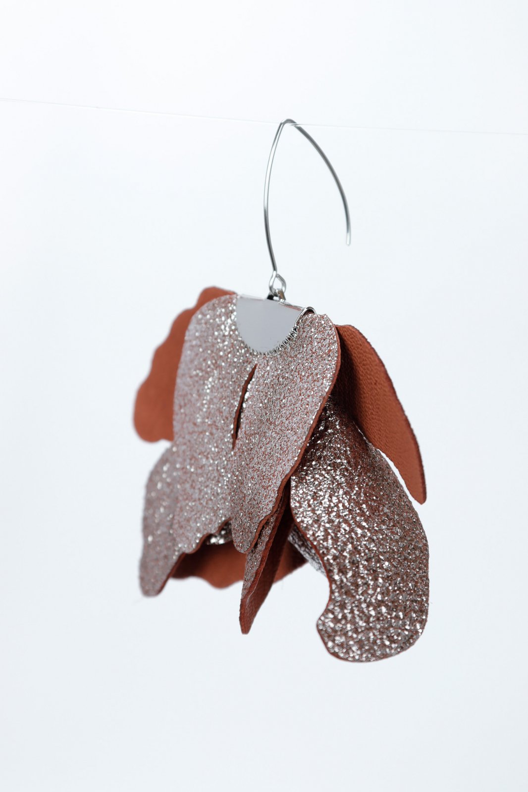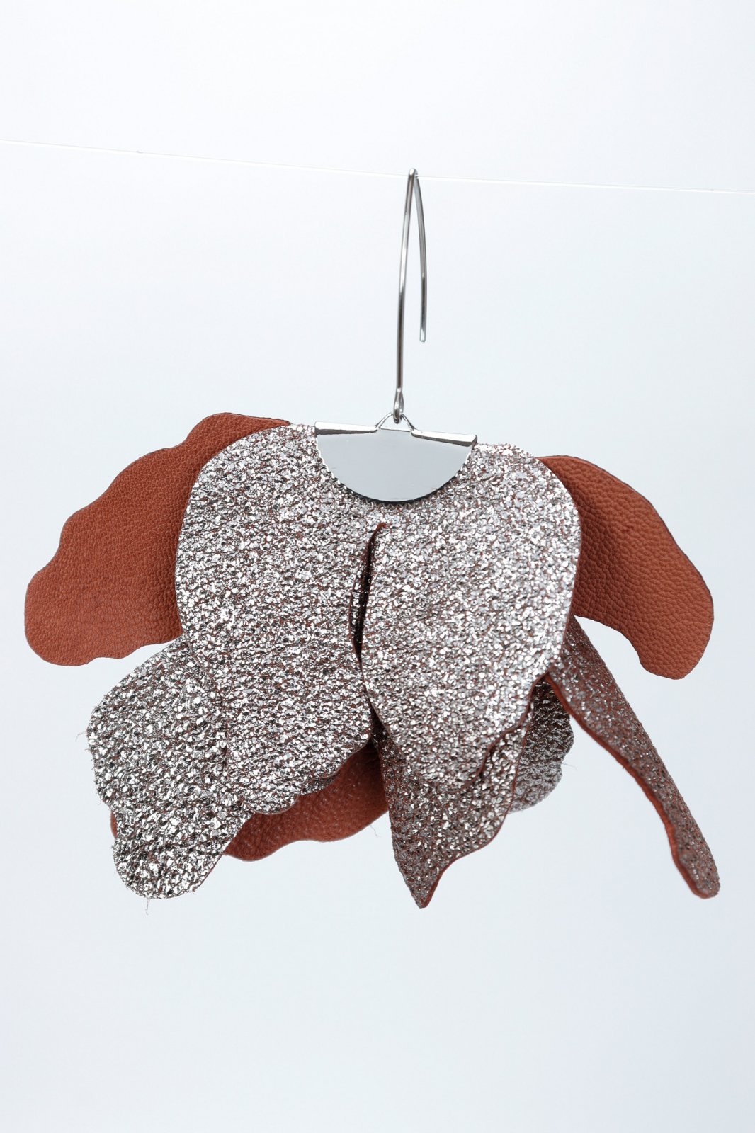 O operă de artă purtabilă. Acești cercei de 9 cm, lucrați manual din piele italiană premium, prezintă un design floral 3D spectaculos. Un statement unic, inspirat din natură, de eleganță și confort.