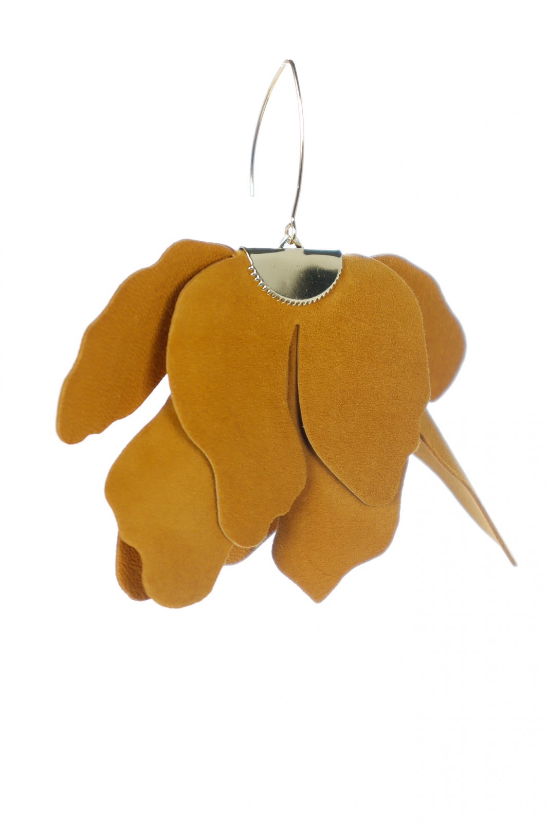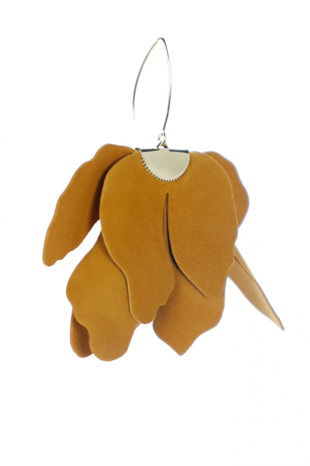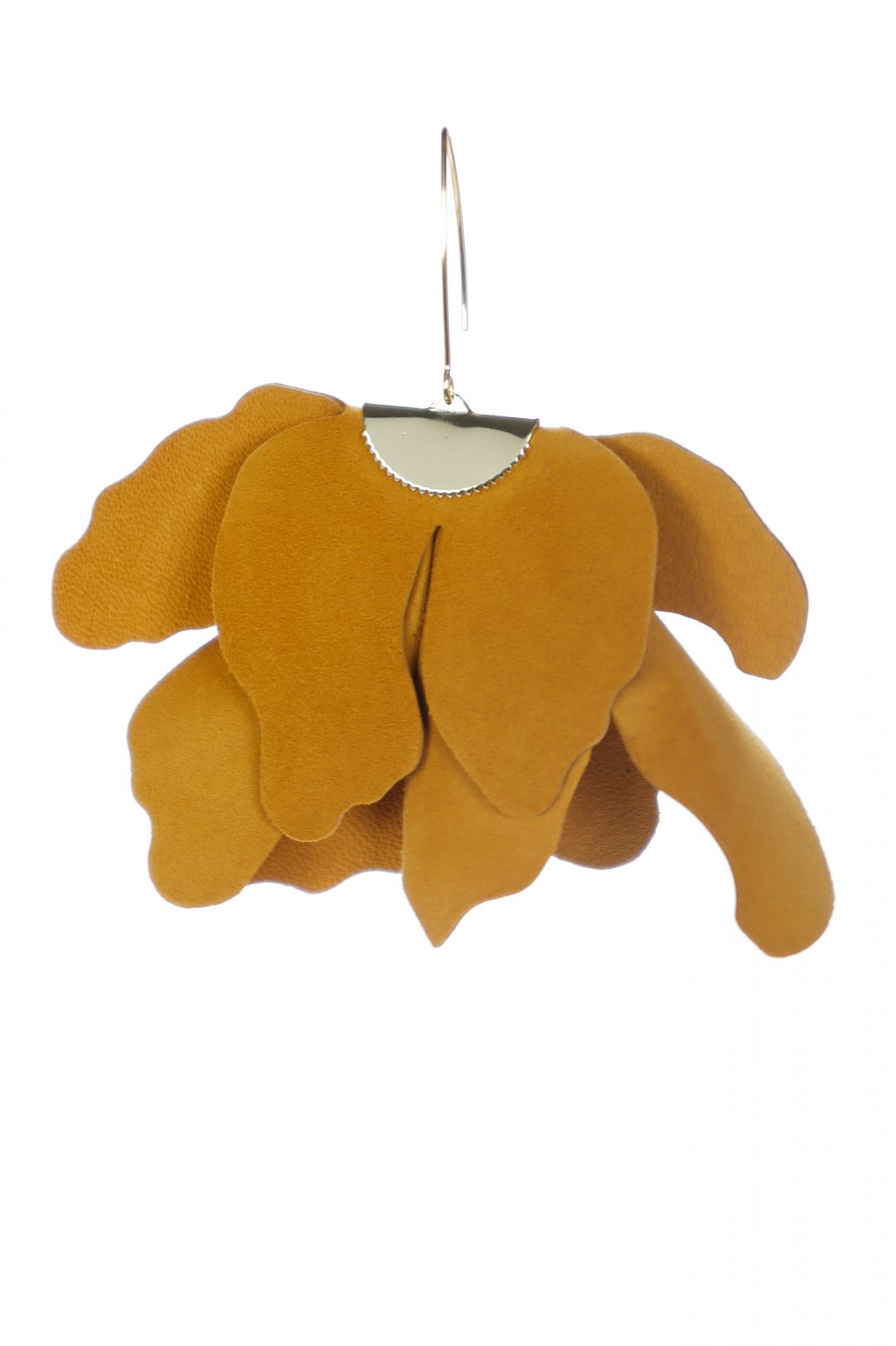 "Acești cercei statement, lucrați manual, sunt o adevărată explozie de culoare și eleganță. Petalele suprapuse, realizate din piele italiană într-o nuanță vibrantă de galben șofran, creează o floare abstractă, plină de volum și textură. Închizătoarea delicată tip cârlig, realizată din oțel inoxidabil, completează armonios designul, asigurând totodată confort și durabilitate în purtare. Cu o lungime de 9 cm, acești cercei vor atrage atenția și vor aduce o notă sofisticată și plină de viață oricărei ținute, fiind accesoriul perfect pentru femeia care apreciază eleganța naturală și detaliile rafinate.Acești cercei sunt mai mult decât un simplu accesoriu; ei sunt un statement de stil, o expresie a personalității tale unice. Culoarea vibrantă și designul floral adaugă o notă de îndrăzneală și feminitate, în timp ce calitatea materialelor și finisajele rafinate asigură o durată de viață lungă.Fie că îi porți la o ținută casual sau la o ocazie specială, acești cercei vor adăuga o notă de eleganță și rafinament. Sunt accesoriul perfect pentru femeia care știe ce vrea și nu se teme să se exprime prin stilul ei.Caracteristici: