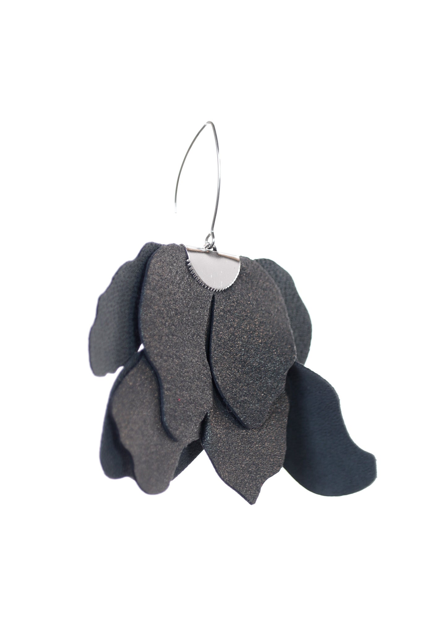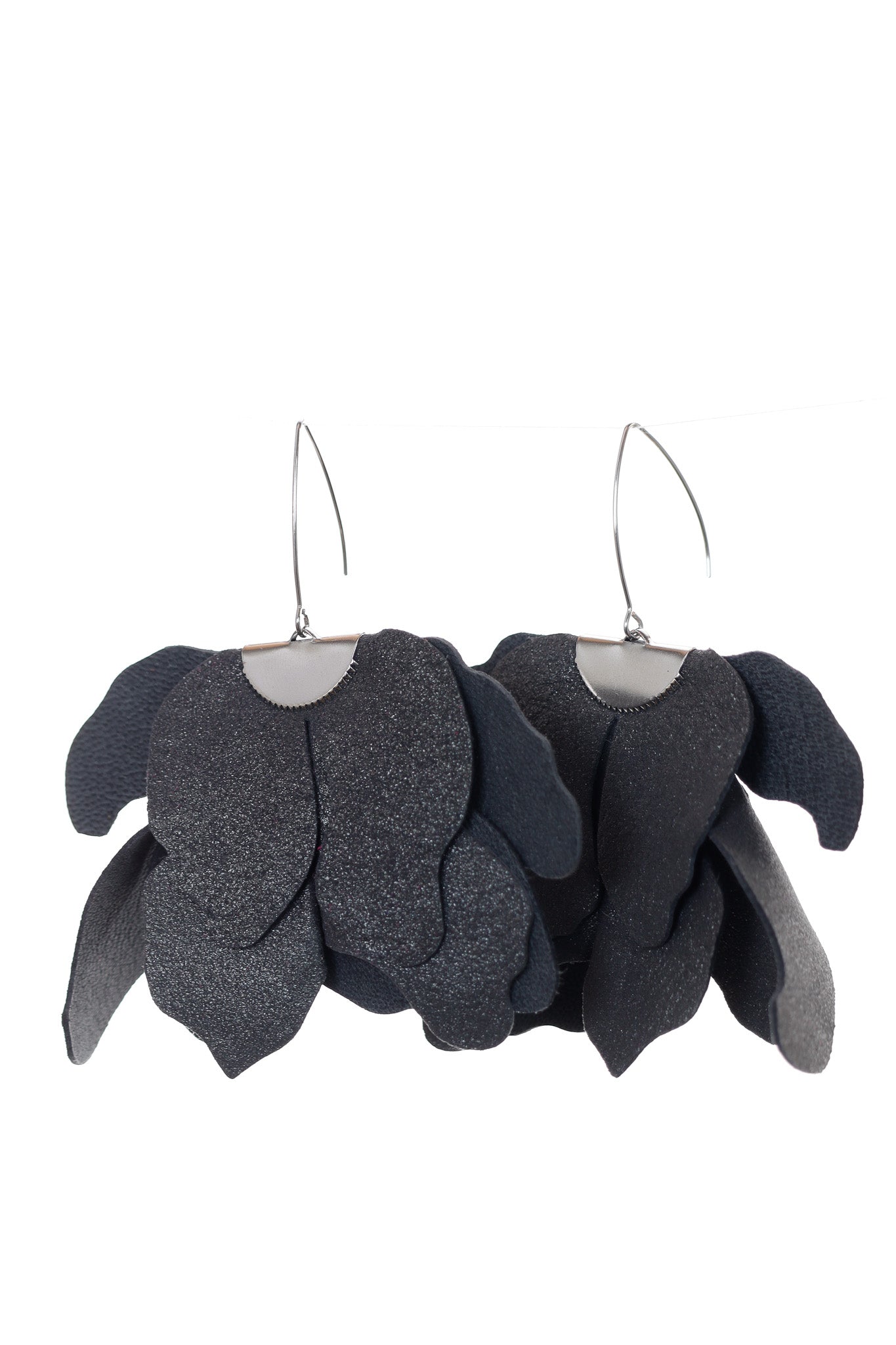 O pereche de cercei voluminosi și dramatici, inspirați de frumusețea unei flori. Sunt accesoriul perfect pentru a adăuga o notă de eleganță misterioasă și rafinament sofisticat oricărei ținute.