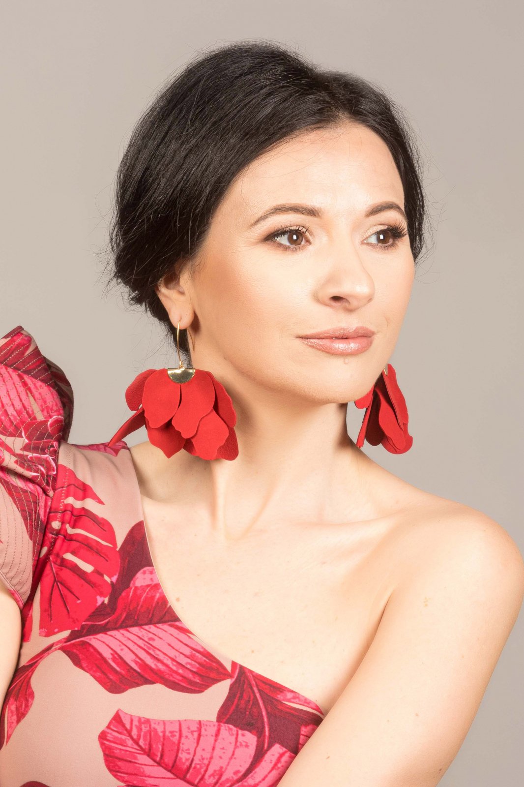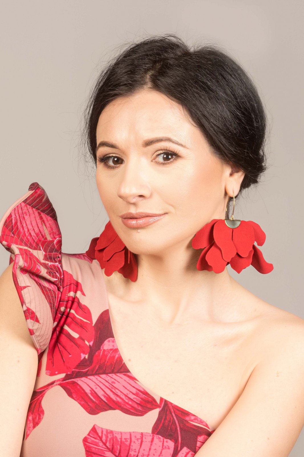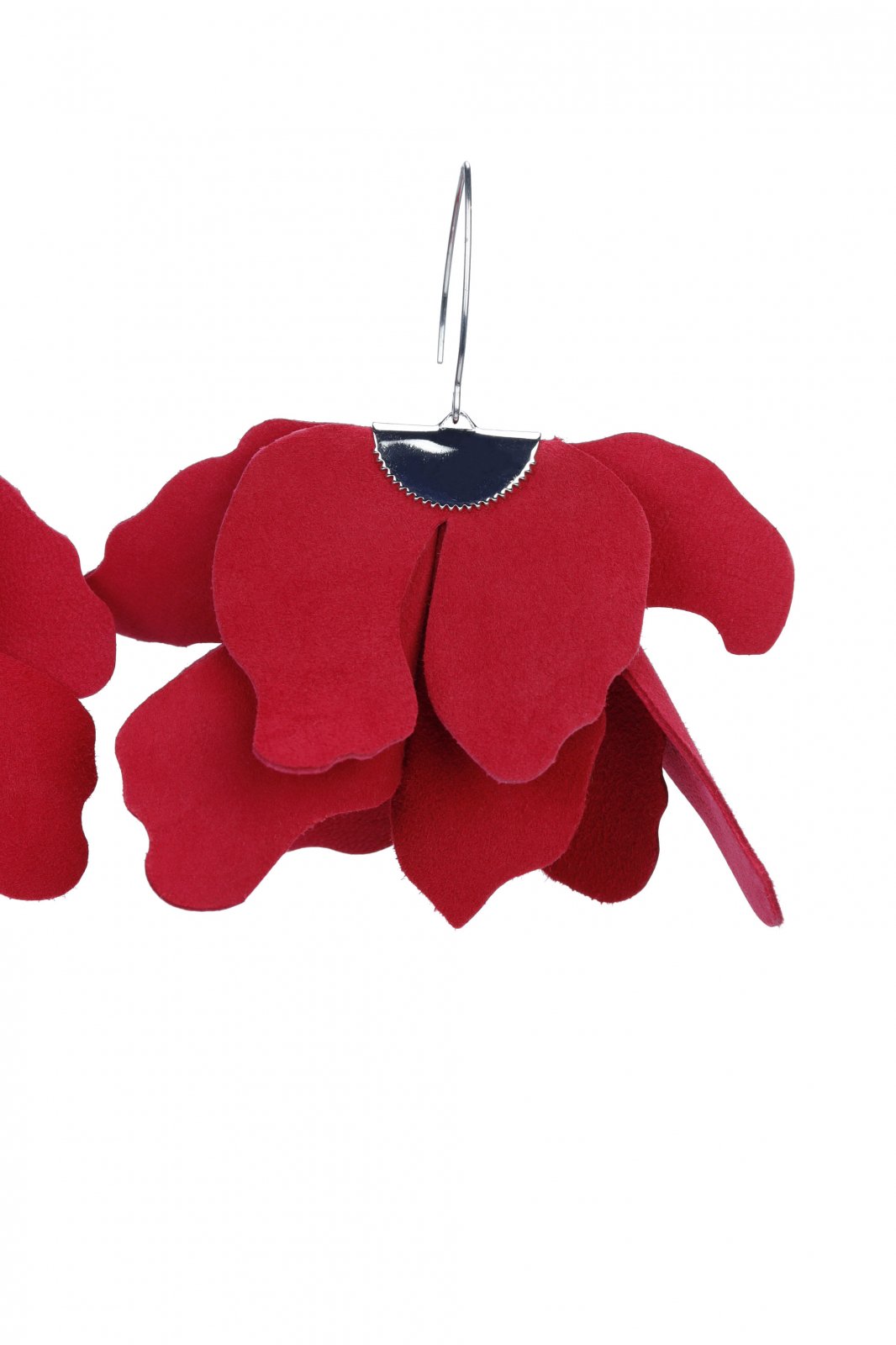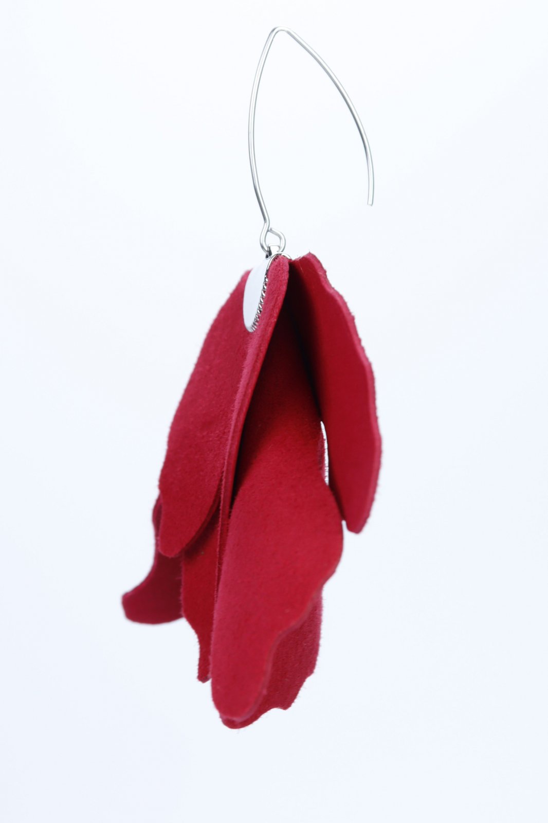 "Fă o declarație îndrăzneață și pasională cu acești cercei superbi în formă de floare roșie. Lucrați manual, cu migală, din piele italiană de înaltă calitate, fiecare petală este suprapusă pentru a crea un efect tridimensional captivant care adaugă profunzime și mișcare. Dimensiunea lor generoasă asigură un look sofisticat, atrăgător, în timp ce cârligele din oțel inoxidabil hipoalergenic oferă confort pentru purtare pe tot parcursul zilei. Perfecți pentru a adăuga o notă vibrantă de eleganță oricărei ținute.Caracteristici: