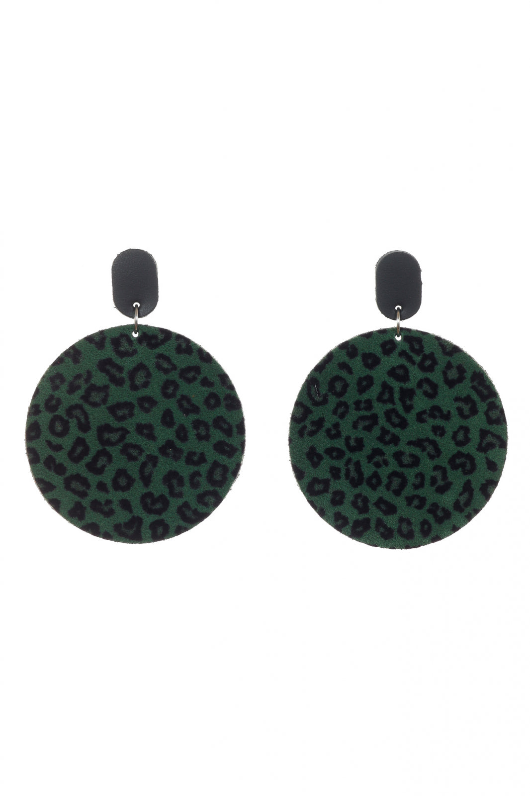 Cercei statement din piele naturală cu un design geometric și print leopard în verde. Un accesoriu îndrăzneț care aduce personalitate puternică și stil contemporan oricărei ținute.