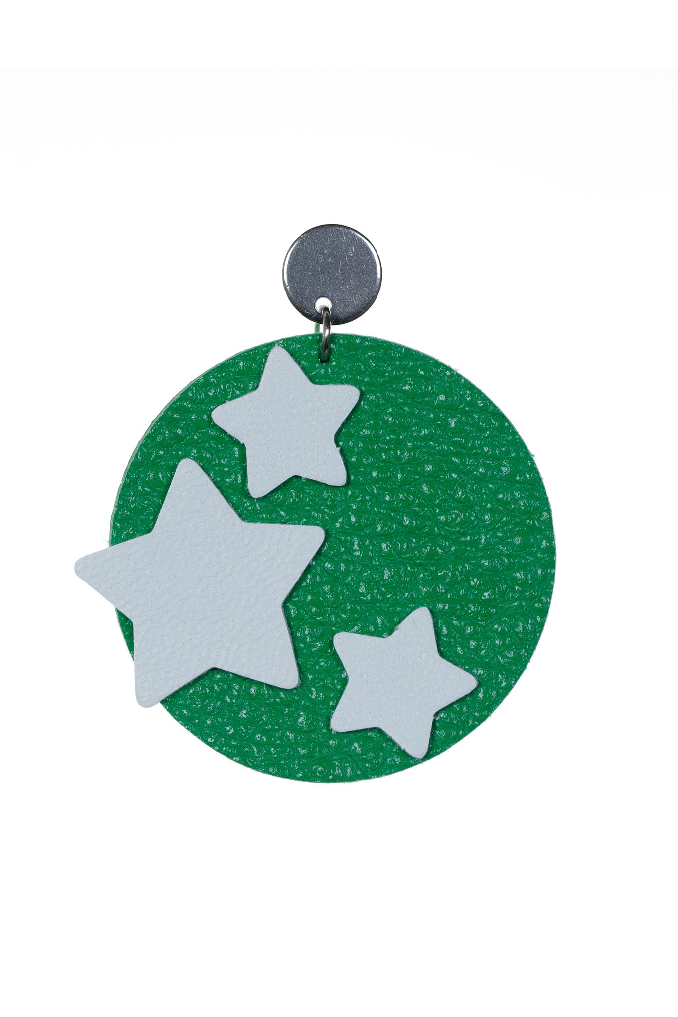 Lasă-te purtată de un design inspirat de cerul nopții, perfect pentru perioada sărbătorilor. Baza, un disc generos de 4.5 cm din piele naturală de culoare Verde Smarald, este acoperită cu trei stele de dimensiuni diferite, realizate din piele albă netedă. Acest contrast de texturi și culori transformă cerceii într-o piesă statement de nelipsit în decembrie. Sunt accesoriul perfect pentru petrecerile de Crăciun sau Revelion, adăugând o notă de originalitate și veselie. Confortul este asigurat de greutatea lor redusă și de prinderea stabilă de tip șurub din inox. Poartă-i pentru a te simți plină de energie și pentru a adăuga un accent de glamour cosmic ținutei tale.