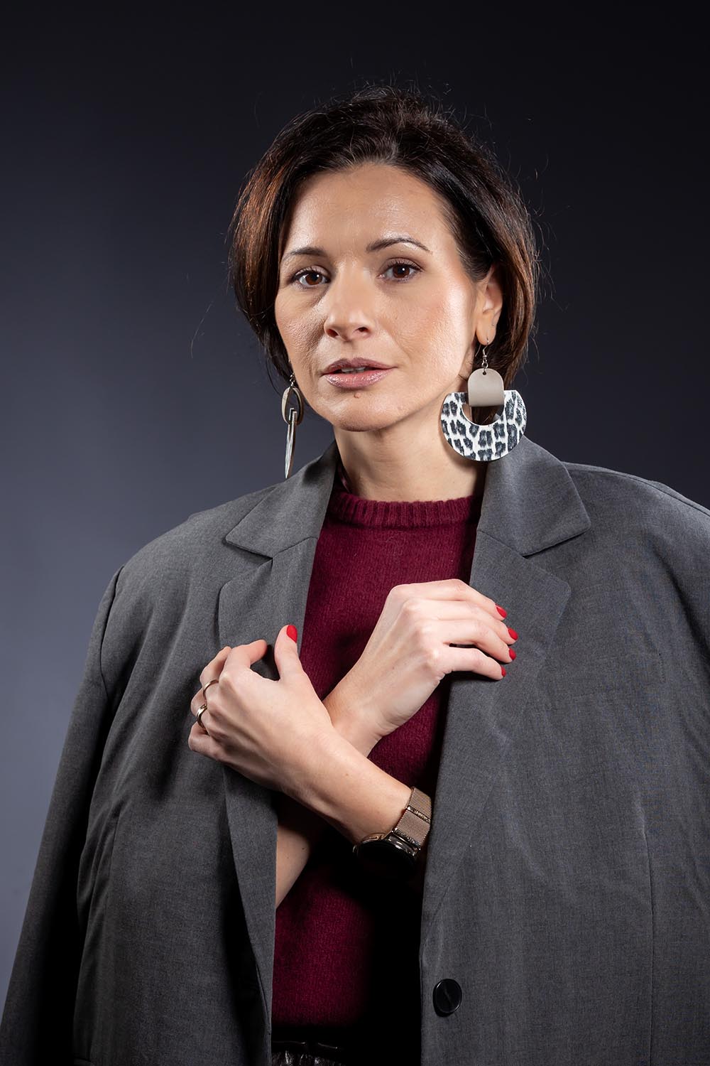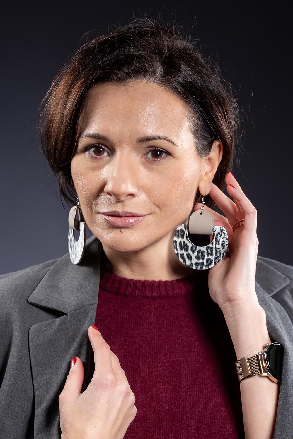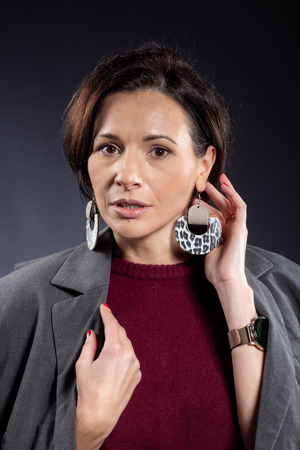 Creați pentru a fi punctul central al oricărui look, acești cercei geometrici transformă pielea naturală într-o formă de artă purtabilă. Imprimeul de inspirație safari aduce un aer exotic și sofisticat, fiind ușor de asortat atât cu o cămașă albă minimalistă, cât și cu o rochie de seară neagră.