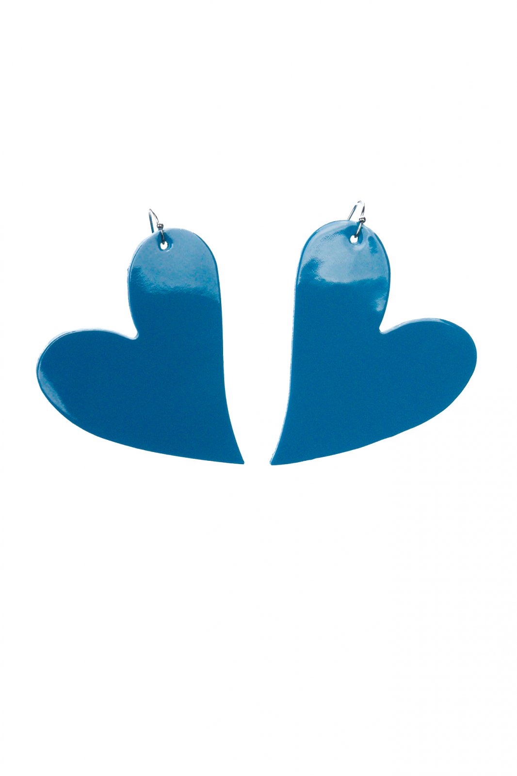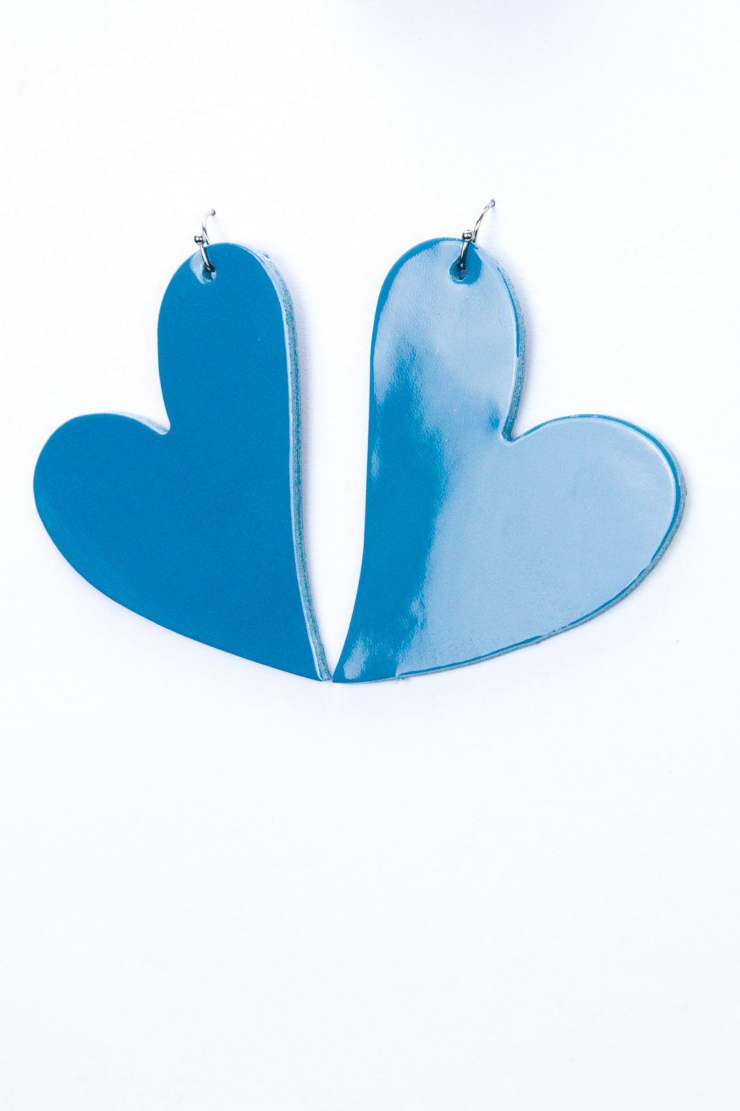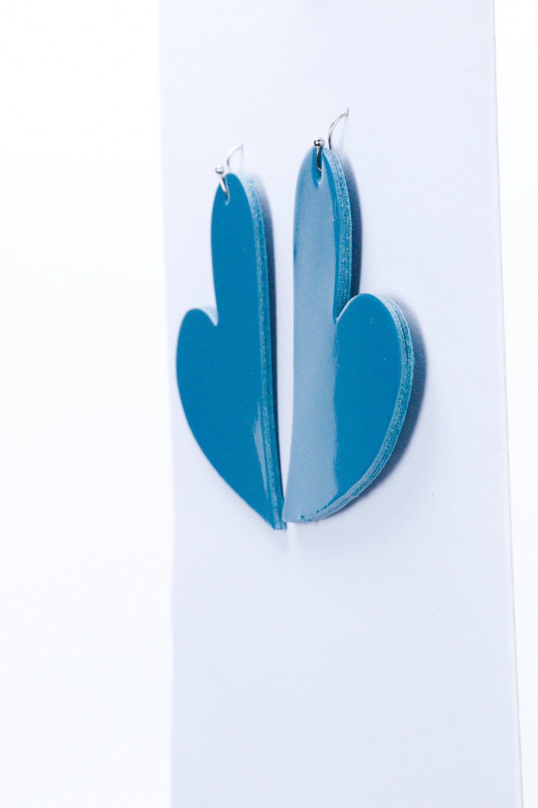 Romantism vibrant, modern. Lucrați manual din piele albastru lăcuit, acești cercei inimă șic oferă o pată de culoare îndrăzneață, lucioasă, cu un design atemporal și romantic.