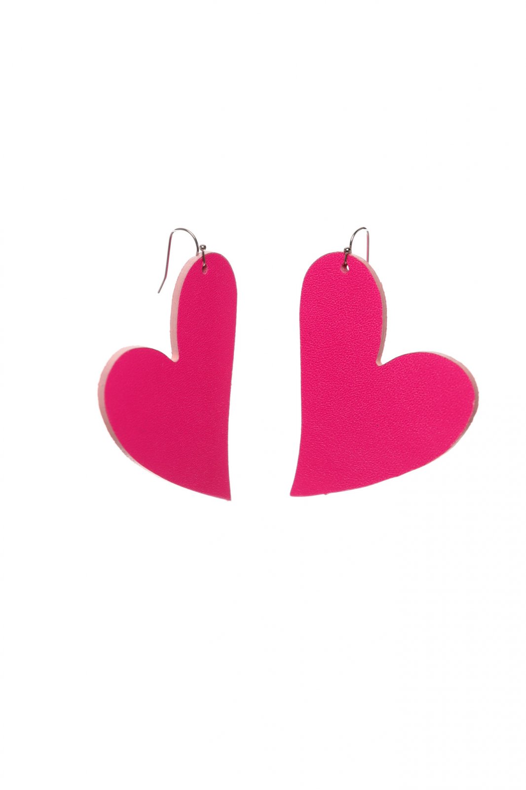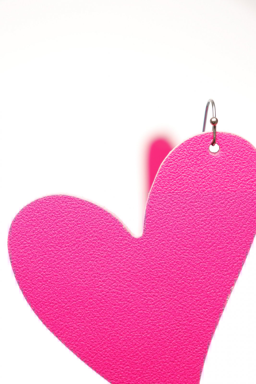Vibrant & Îndrăzneț. Fă un statement pasional cu acești cercei inimă mari, de 10 cm. Lucrați manual din piele naturală într-o fuchsia neon electrizantă, adaugă o explozie de energie plină de bucurie oricărui look.
