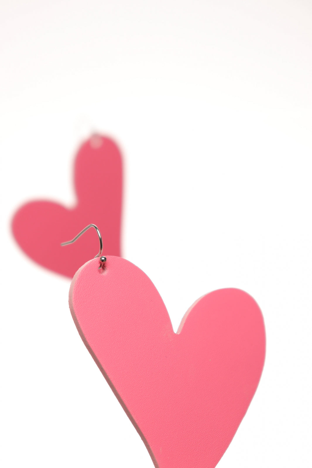 Cerceii sunt decupați în formă de inimă, cu un contur delicat și feminin. Culoarea roz coral, caldă și subtilă, le conferă o notă romantică și elegantă. Textura pielii naturale adaugă un plus de rafinament, iar închizătorile tip cârlig, realizate din oțel inoxidabil, sunt ușor de purtat și asigură o fixare sigură.
