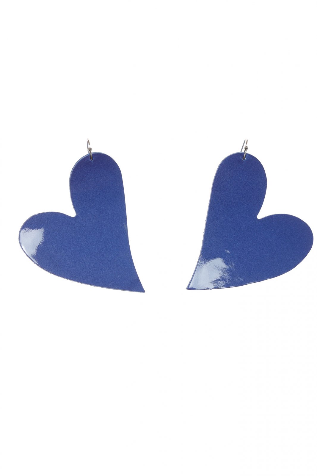 Cercei statement din piele naturală lăcuită cu un design în formă de inimă în albastru vibrant. Un accesoriu romantic care aduce culoare și personalitate oricărei ținute.