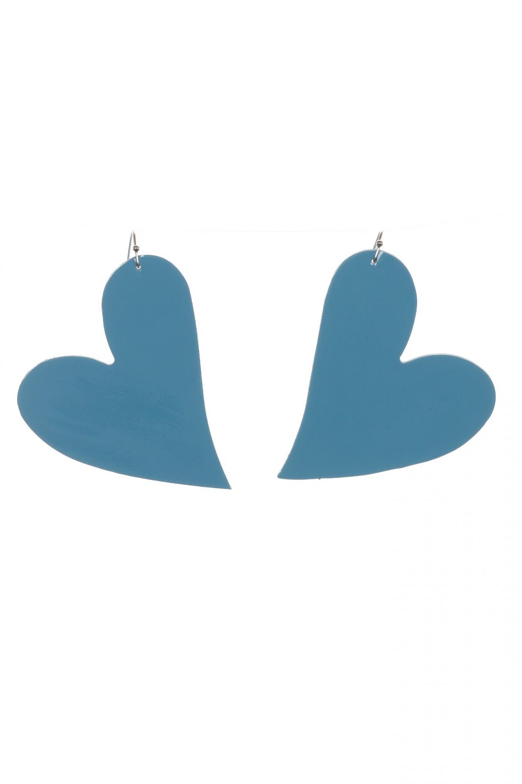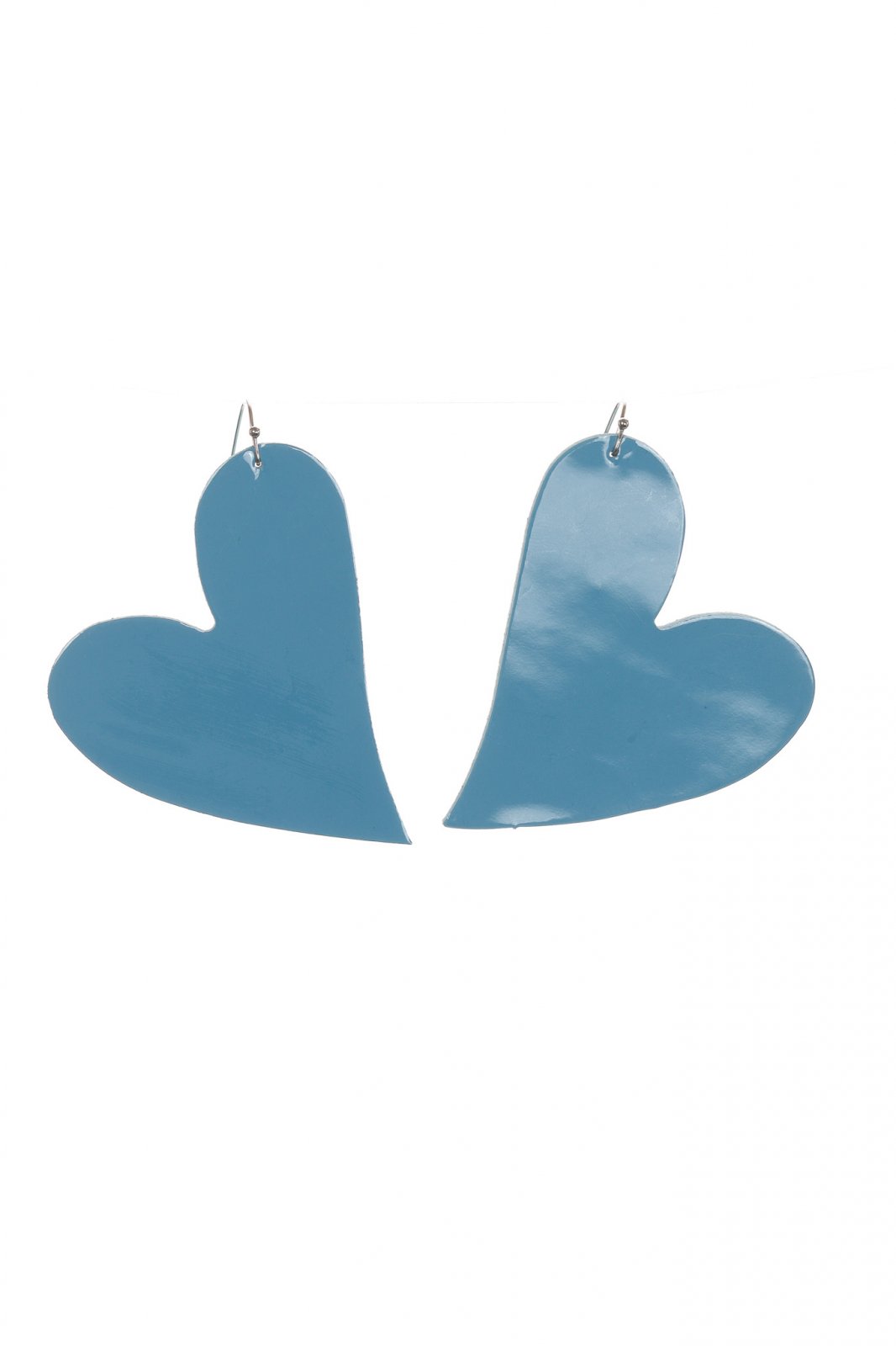 Cercei statement din piele naturală cu un design în formă de inimă în albastru prăfuit (dusty blue). Un accesoriu romantic care aduce eleganță discretă și personalitate oricărei ținute.