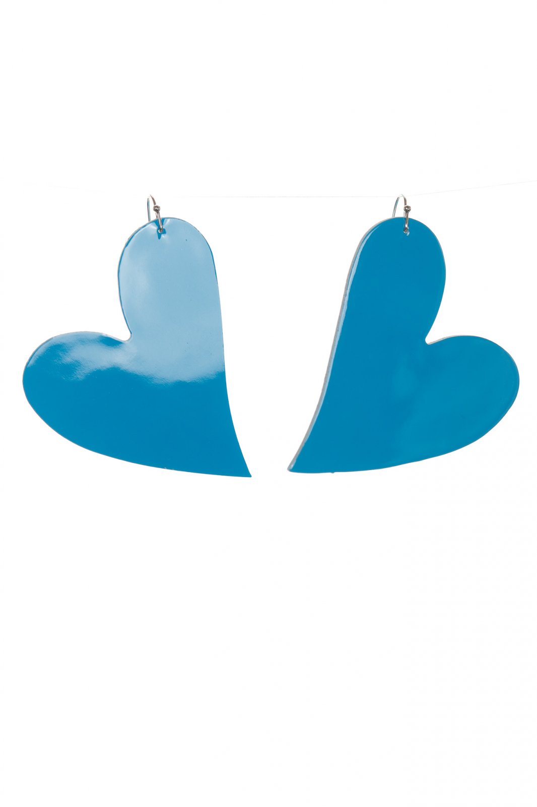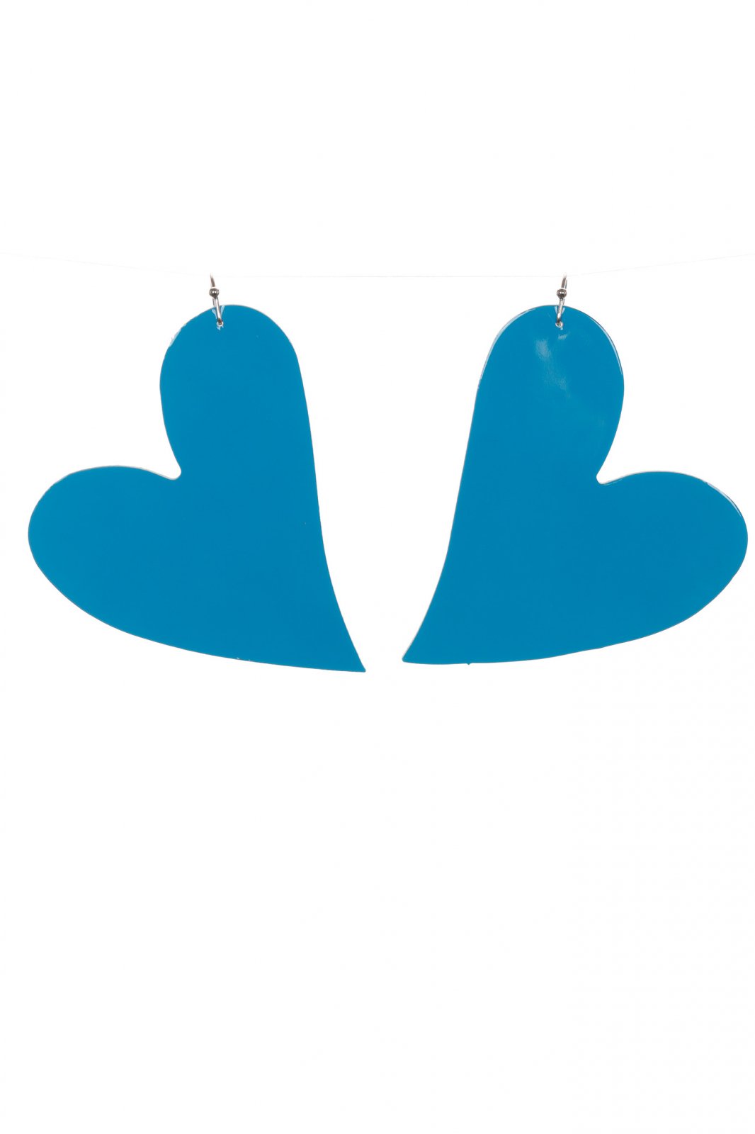 Cercei statement din piele naturală cu un design în formă de inimă în turcoaz vibrant. Un accesoriu romantic care aduce prospețime și personalitate oricărei ținute.