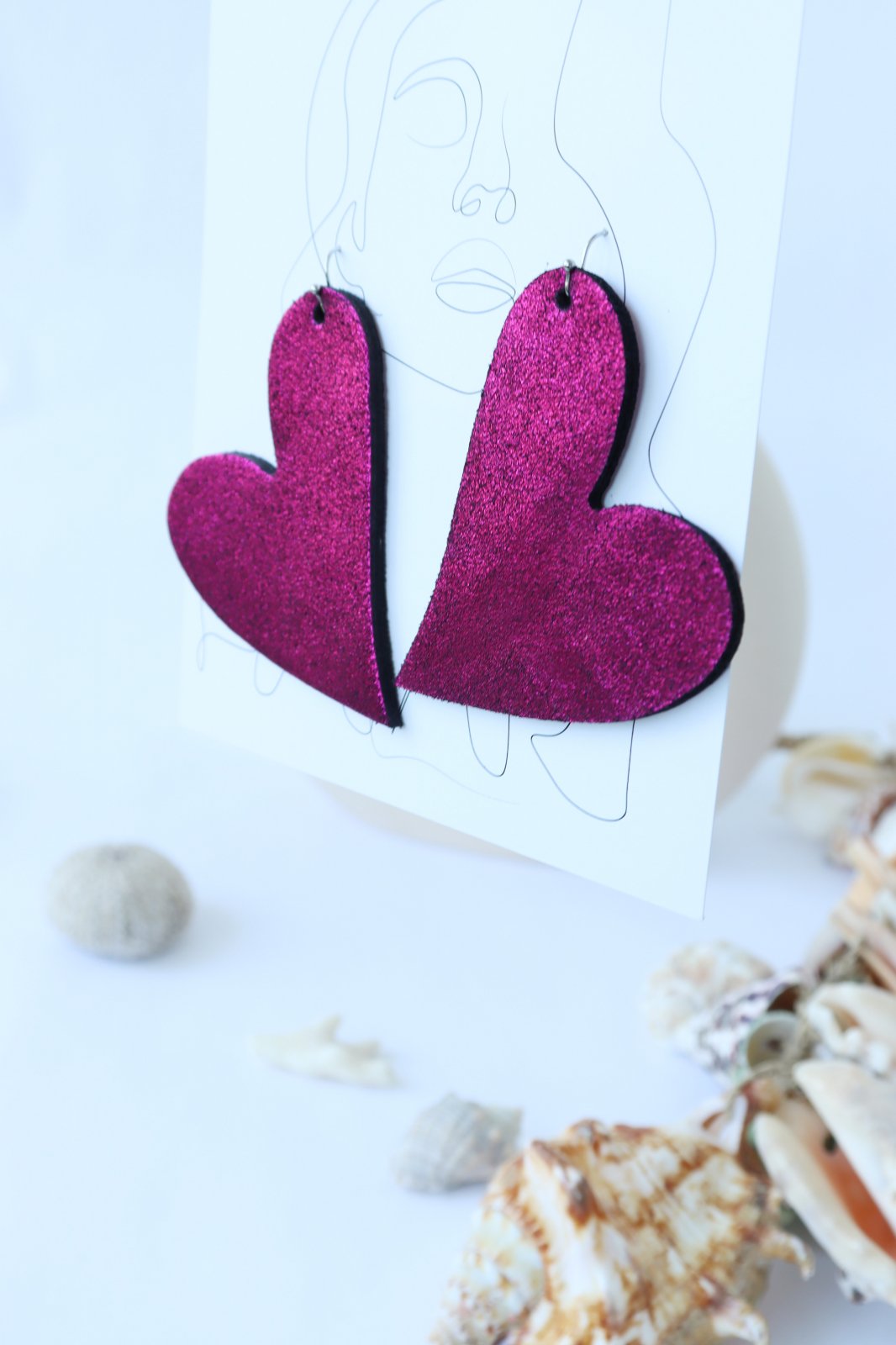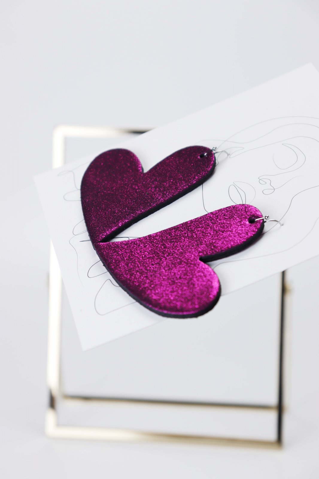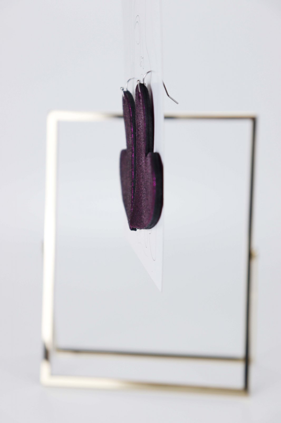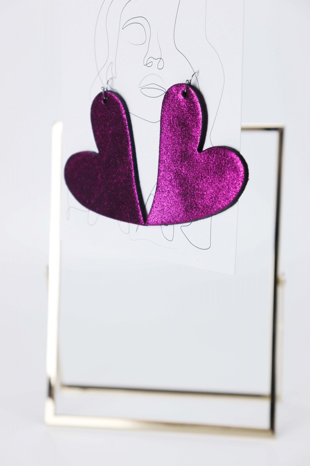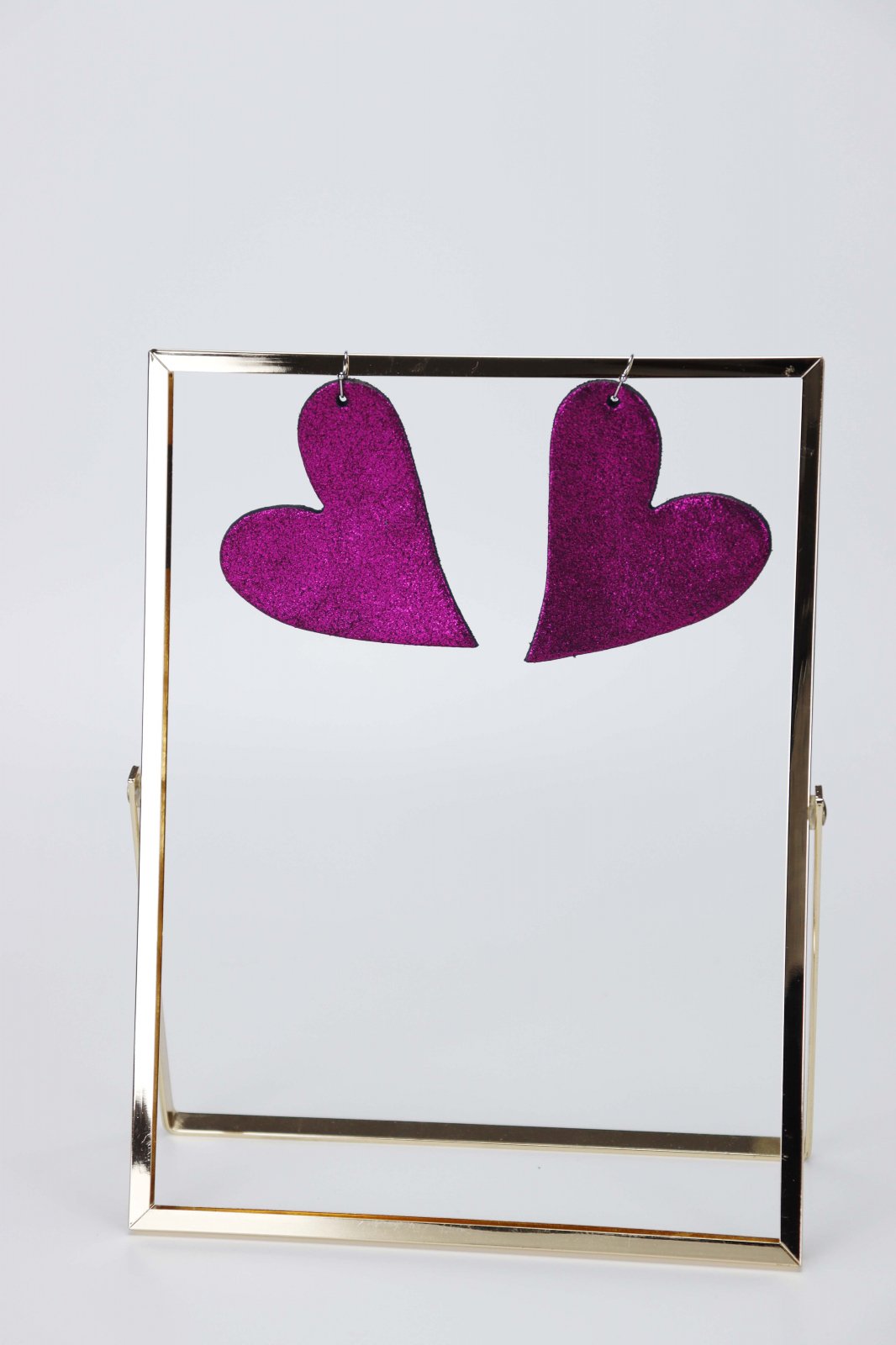 Lucrați manual cu dragoste. Acești cercei fermecători în formă de inimă sunt realizați din piele naturală mov infuzată cu o notă de sclipici. Un accesoriu dulce și glamour, lucrat manual pentru un look unic.
