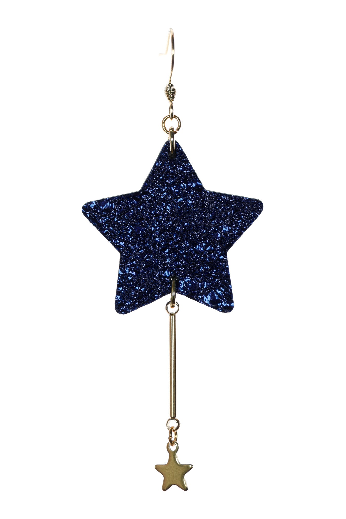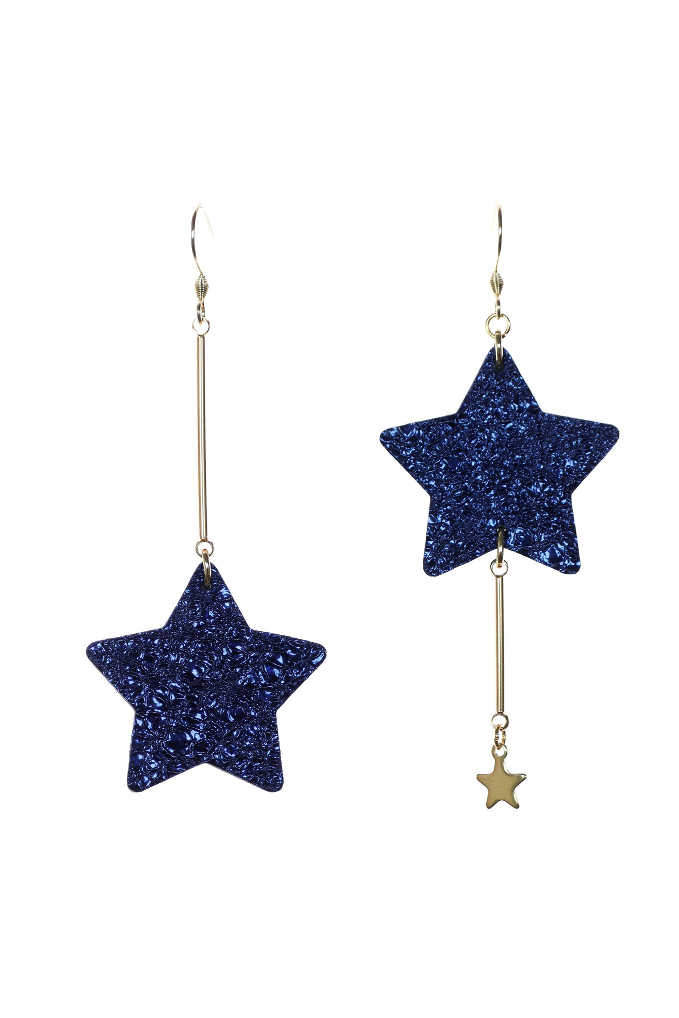 Acești cercei nu sunt pentru cei care se tem să iasă în evidență! Lungimea lor de 9 cm este statement, dar designul asimetric e cel care face toți banii. Unul atârnă frumos cu o baretă suplimentară (sau lanț) și o steluță mică, iar celălalt este all about steaua mare și strălucitoare.