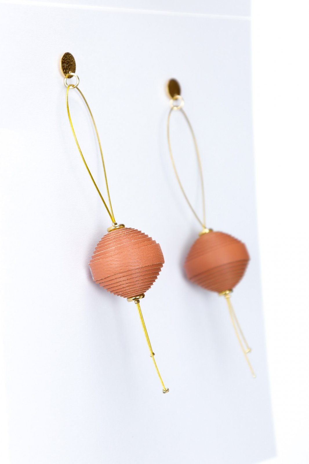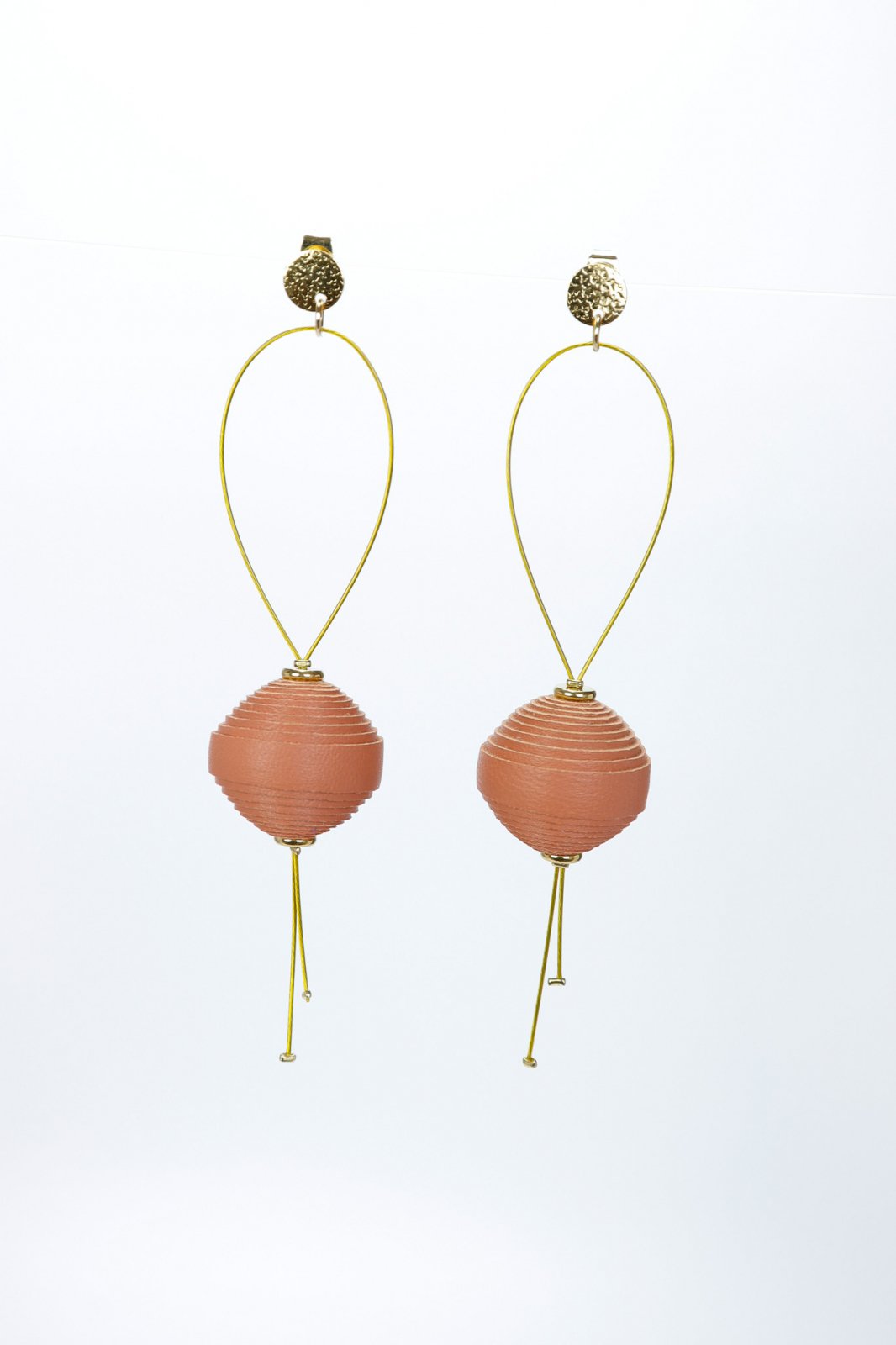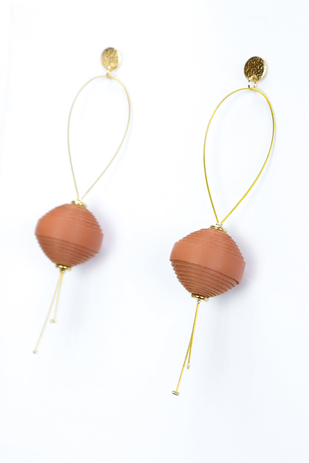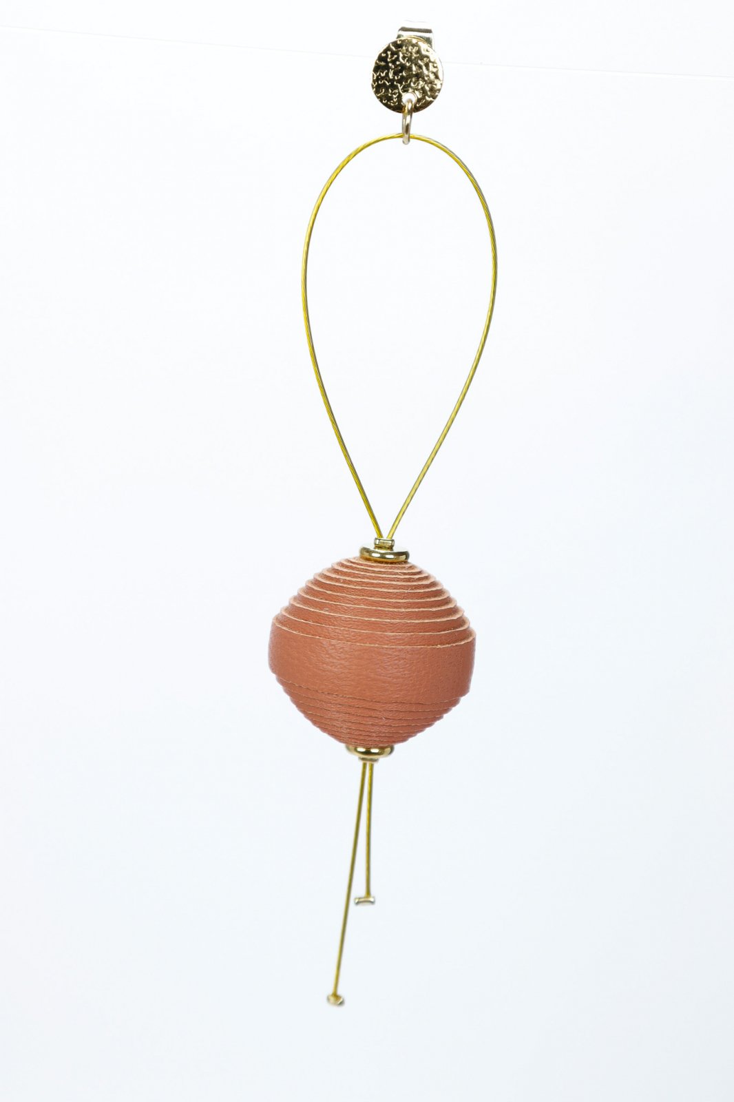 Eleganță fără efort. O mărgea din piele italiană modelată delicat plutește pe o sârmă discretă, creând un look modern și captivant. Lucrați manual, 10 cm lungime, perfecți pentru un statement subtil.